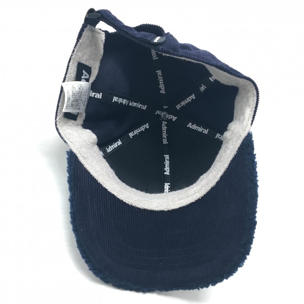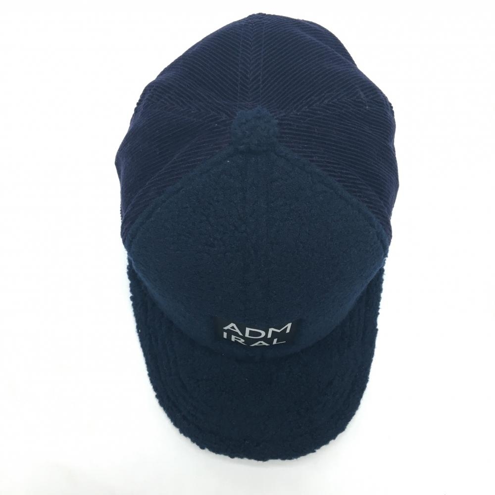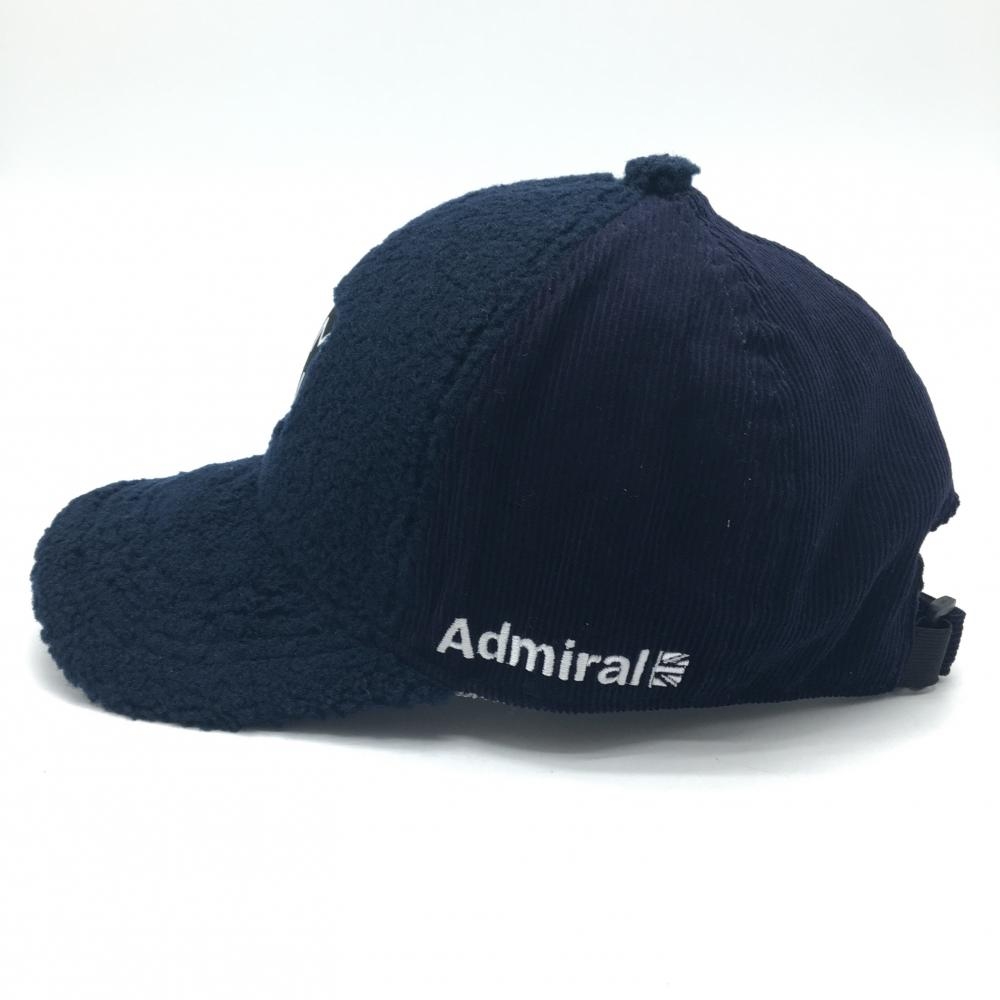 【超美品】アドミラル 異素材キャップ ダークネイビー×白 ボア コーデュロイ フロントロゴ フリー57cm ゴルフウェア Admiral