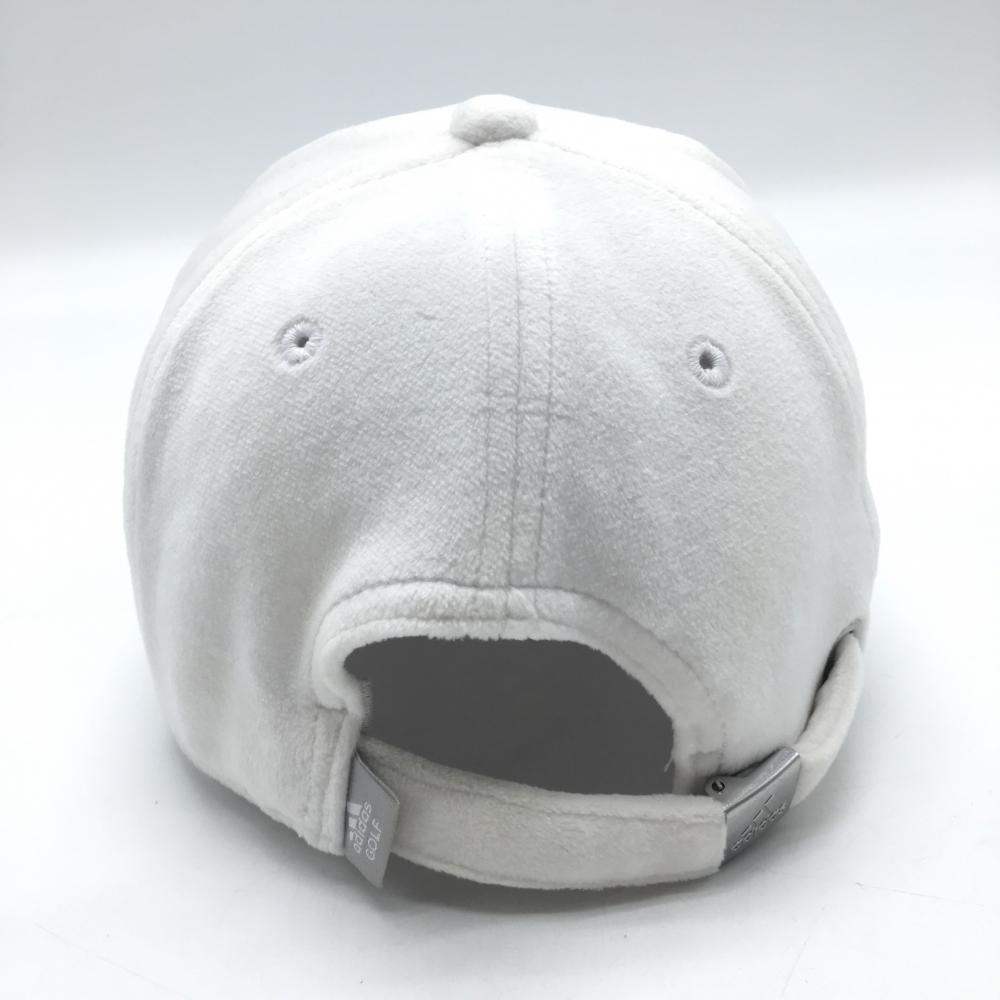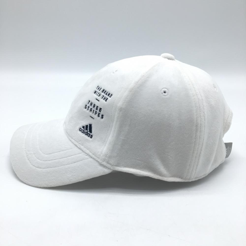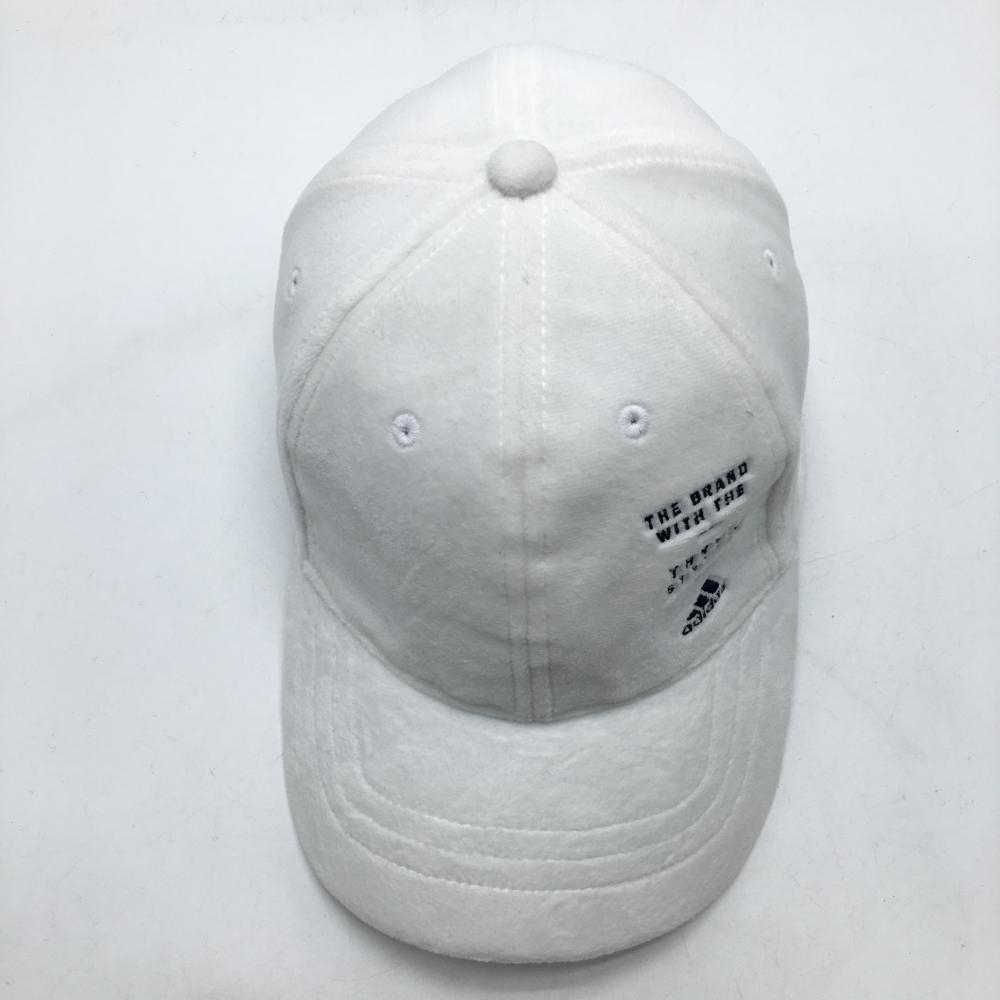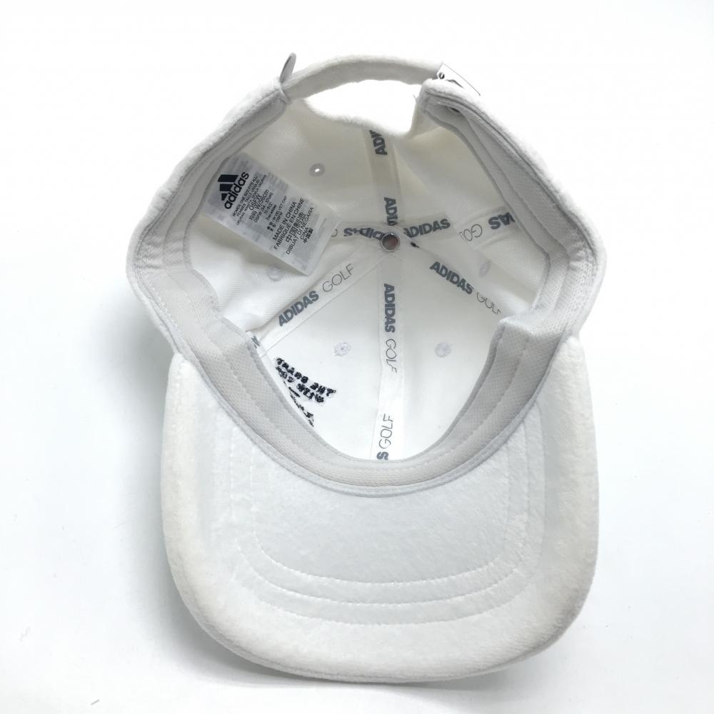 【美品】アディダス キャップ 白×黒 微起毛 ロゴ刺しゅう OSFW(54-57cm) ゴルフウェア adidas