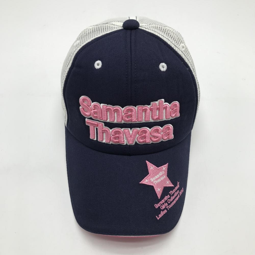 【美品】サマンサタバサUNDER25 メッシュキャップ ネイビー×ピンク 立体ロゴ レディース F ゴルフウェア Samantha Thavasa