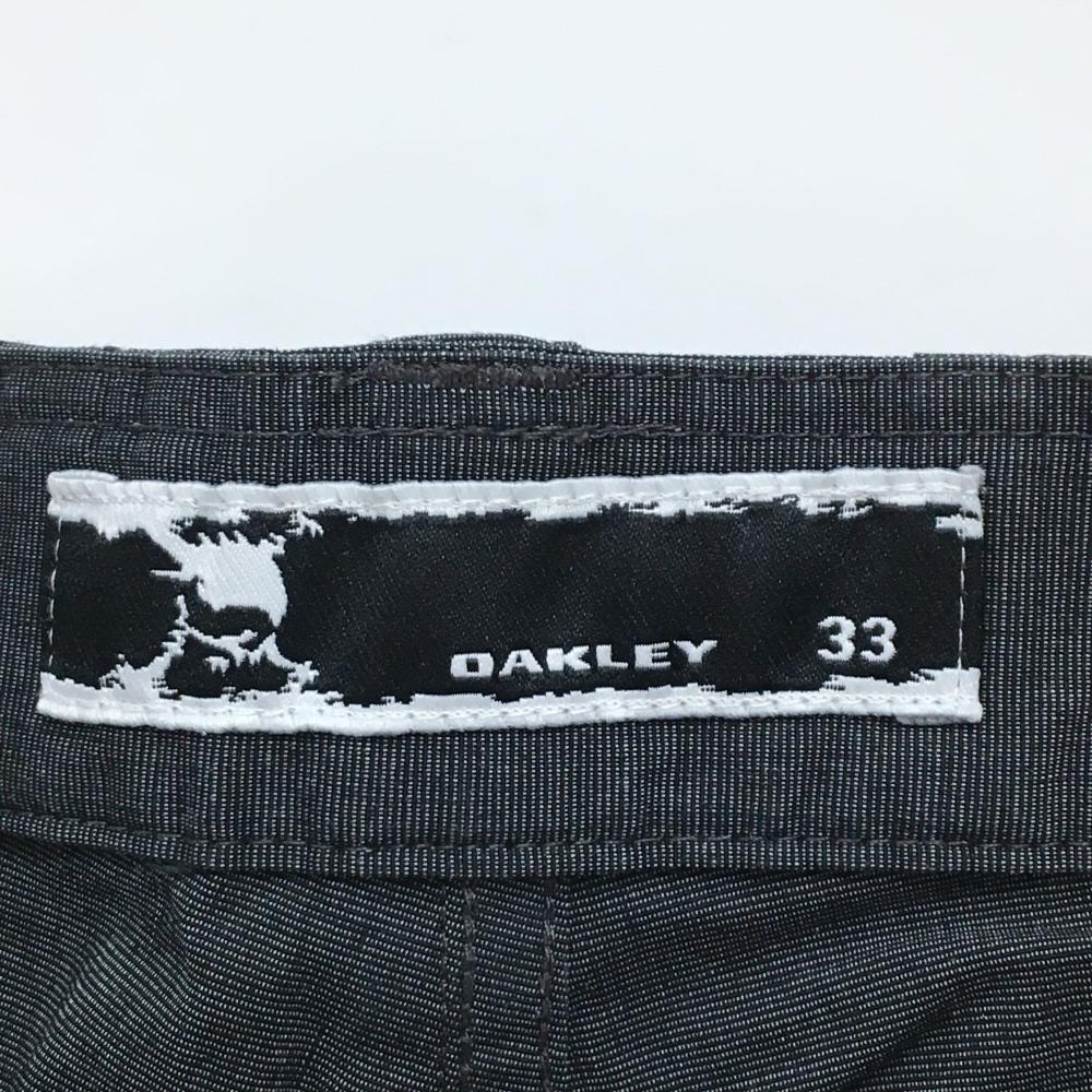 【美品】オークリー パンツ 杢グレー ロゴ刺しゅう ストレッチ コットン混 メンズ 33 ゴルフウェア Oakley