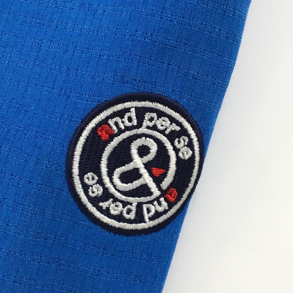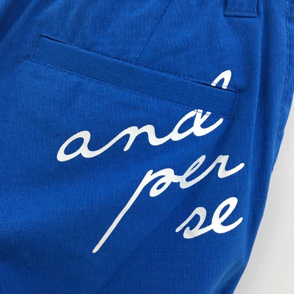 【美品】アンパスィ パンツ ブルー 地模様 ワッペン メンズ M ゴルフウェア and per se