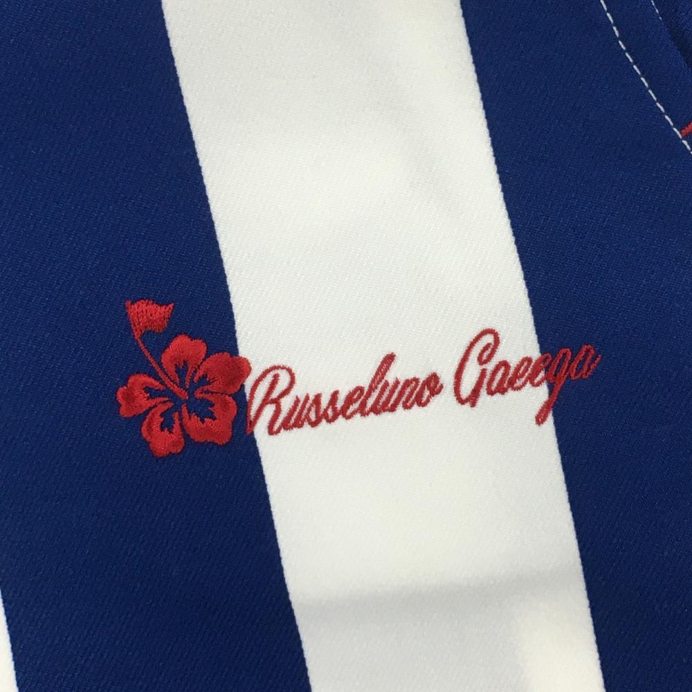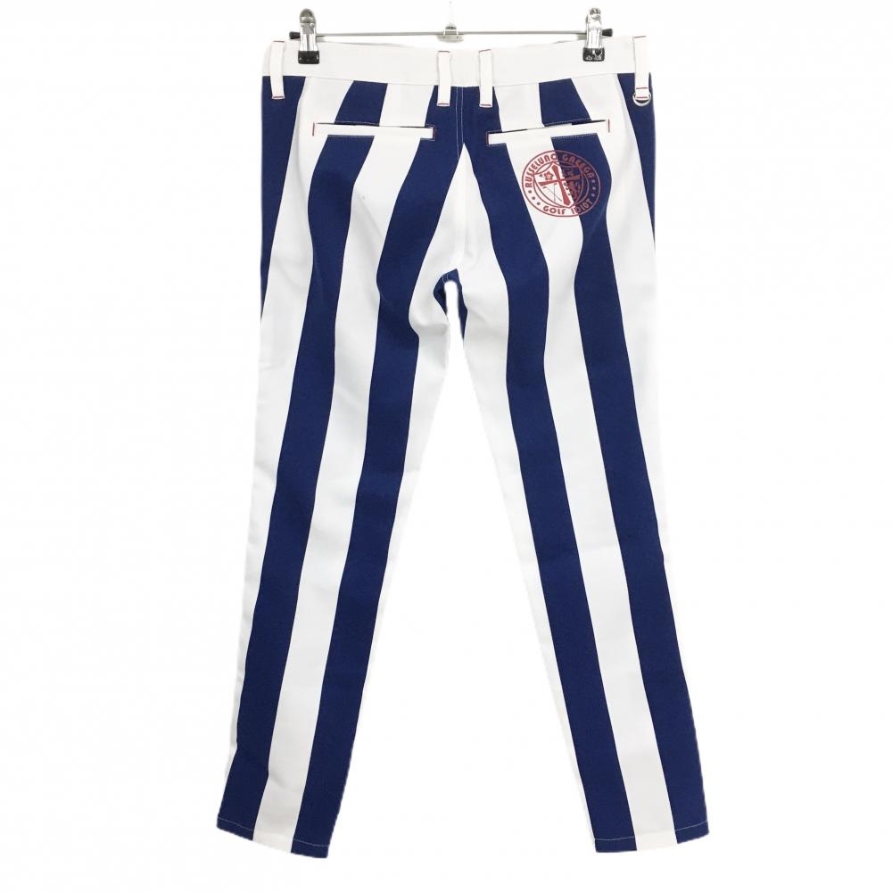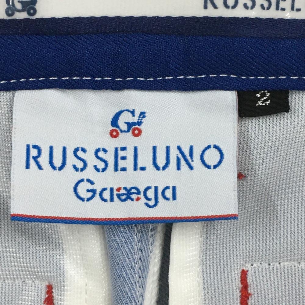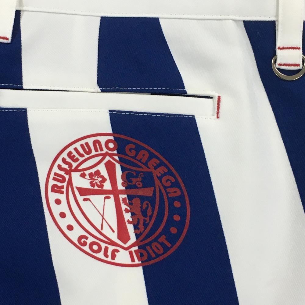 ラッセルノGaeega パンツ 白×ブルー ストライプ ストレッチ レディース 2(L) ゴルフウェア RUSSELUNO