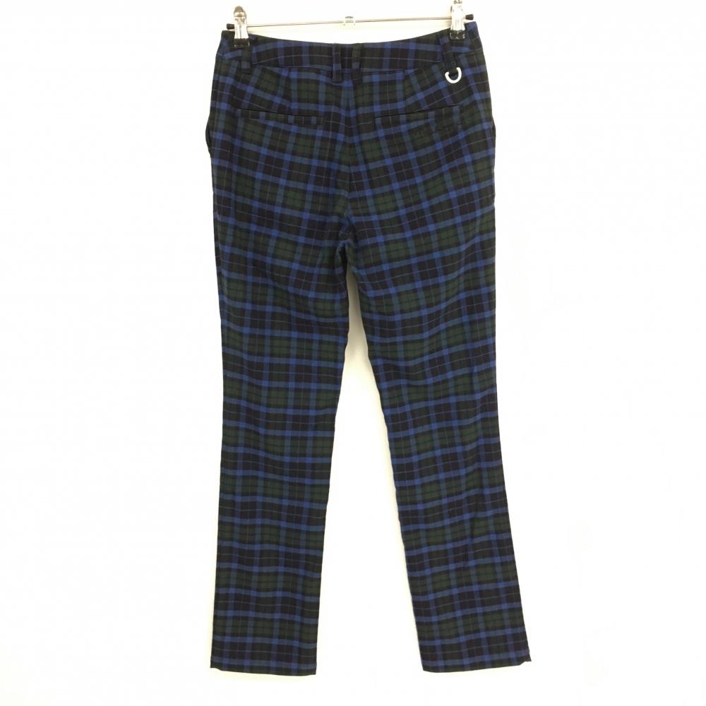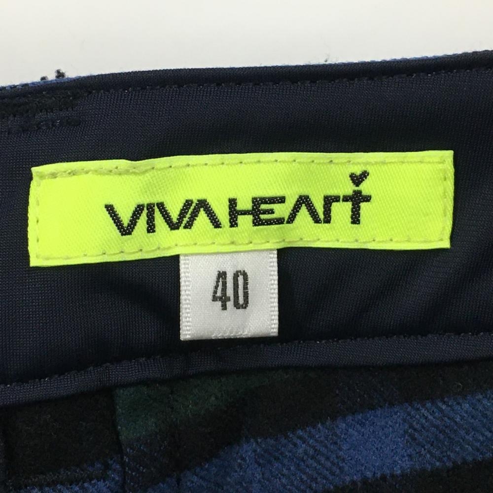 【超美品】ビバハート パンツ ダークグリーン×ライトブルー チェック 裏微起毛 アクリル混 レディース 40(M) ゴルフウェア VIVA HEART