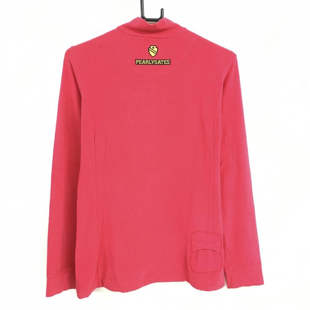 【美品】パーリーゲイツ 長袖ハイネックシャツ レッド系 表微起毛 ハーフジップ レディース 2(L) ゴルフウェア PEARLY GATES