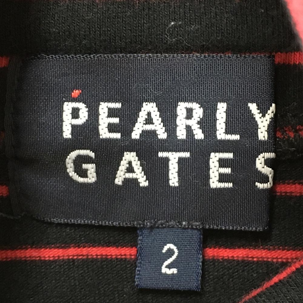 パーリーゲイツ 長袖ハイネックシャツ 黒×レッド ボーダー レディース 2(L) ゴルフウェア PEARLY GATES