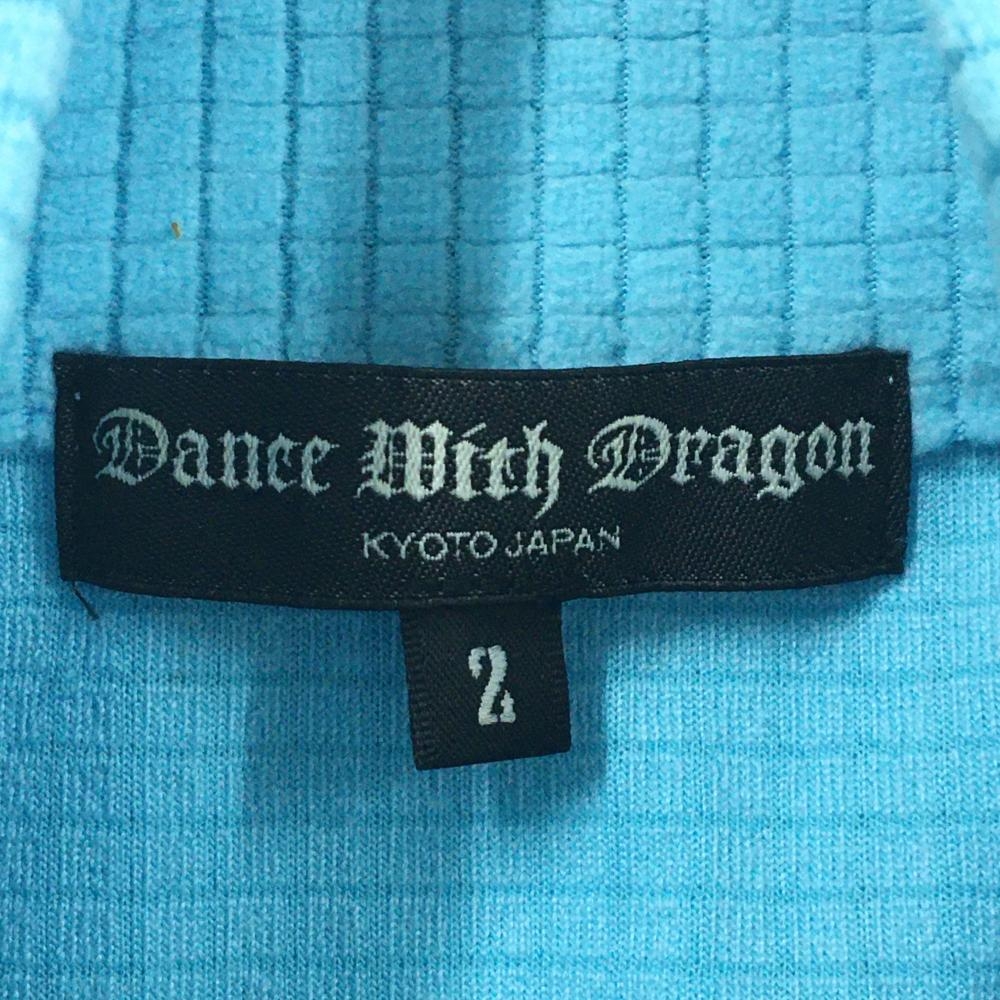 【美品】ダンスウィズドラゴン 長袖ハイネックシャツ ライトブルー 起毛スクエア柄 メンズ 2(M) ゴルフウェア Dance With Dragon