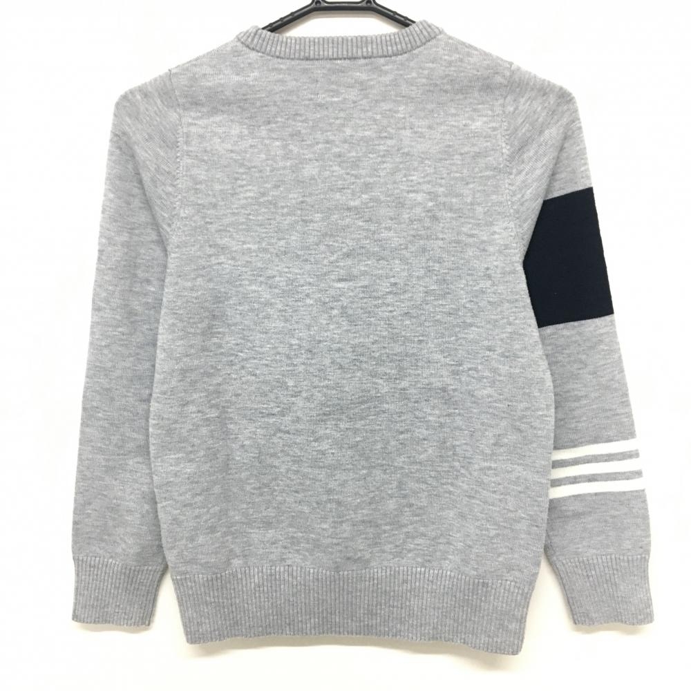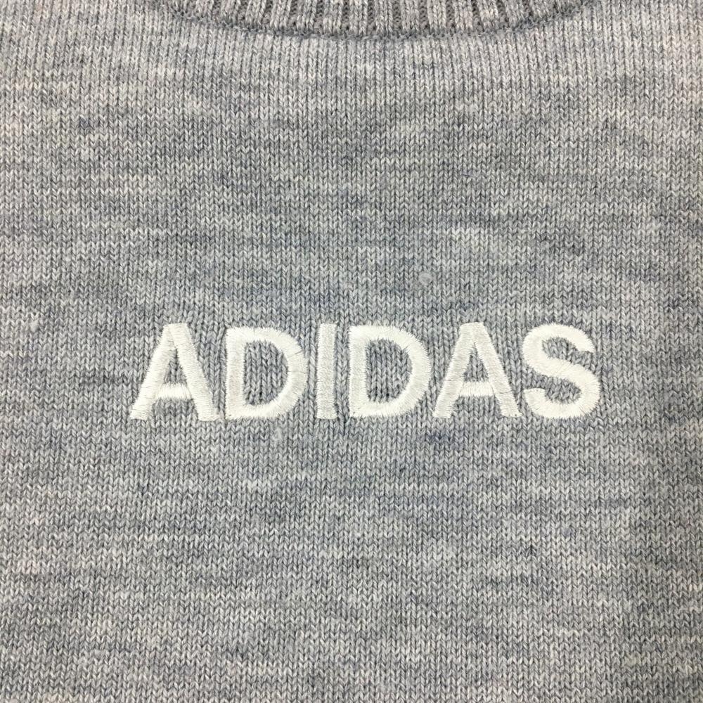 アディダス セーター グレー×黒 ロゴ刺しゅう 袖3ライン ウール混 レディース S/P ゴルフウェア adidas