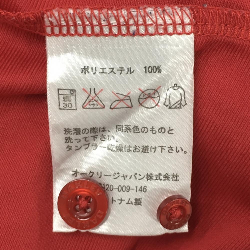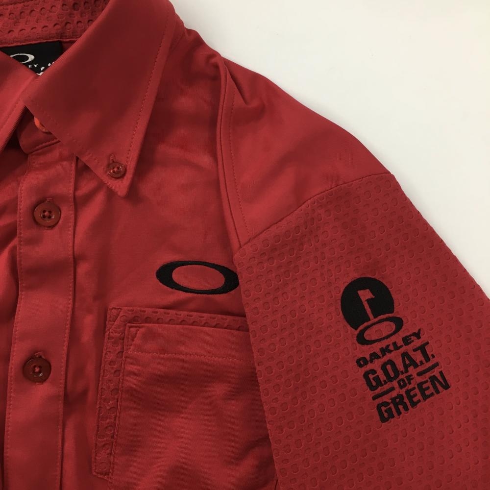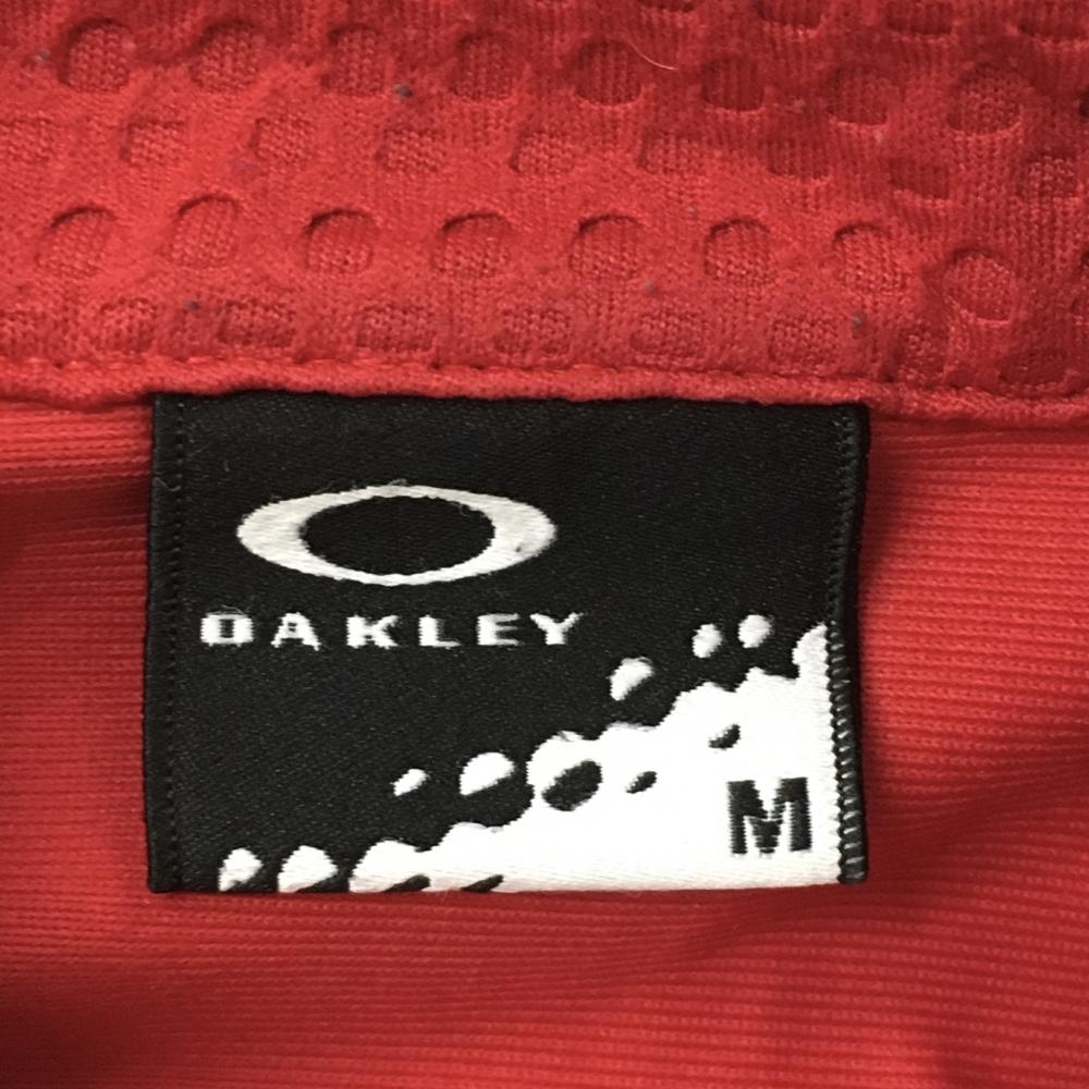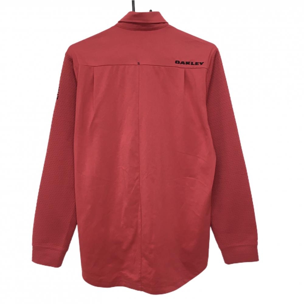 オークリー 長袖シャツ レッド×黒 ロゴ刺しゅう 袖・ポケット一部凸凹生地 メンズ M ゴルフウェア Oakley