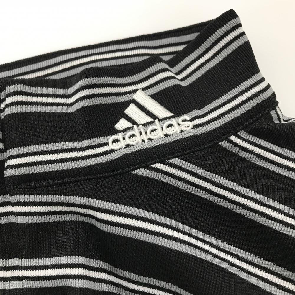 【超美品】アディダス 長袖ハイネックシャツ 黒×グレー ボーダー ハーフジップ メンズ O/XG ゴルフウェア adidas