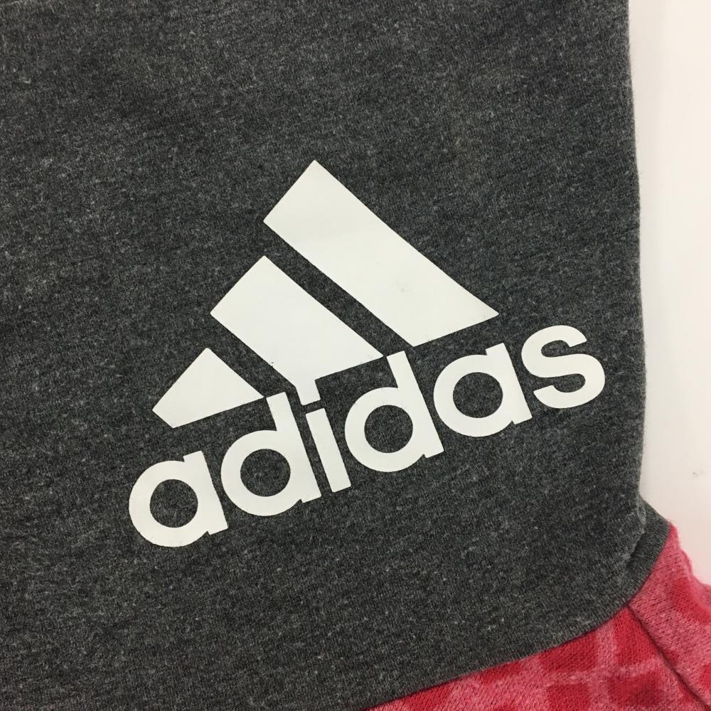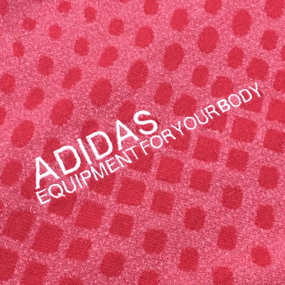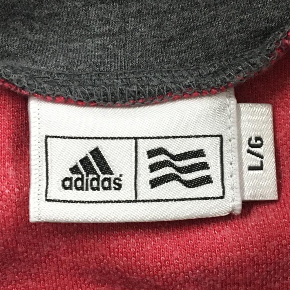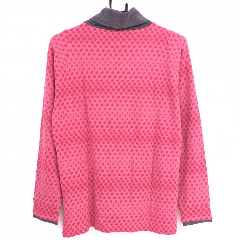 アディダス 長袖タートルネックシャツ ピンク×グレー ドット風 表微起毛 ロゴ白 メンズ L ゴルフウェア adidas