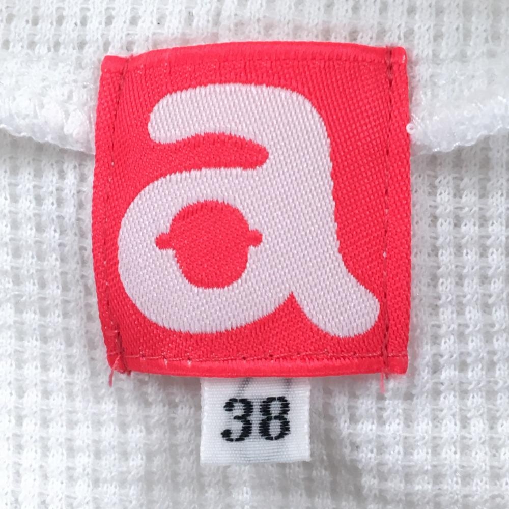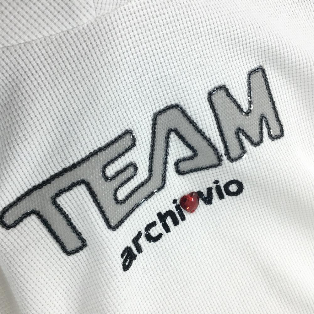 【超美品】アルチビオ 長袖ハイネックシャツ 白 凹凸織生地 パーカー風 スパンコールロゴ レディース 38(M) ゴルフウェア archivio
