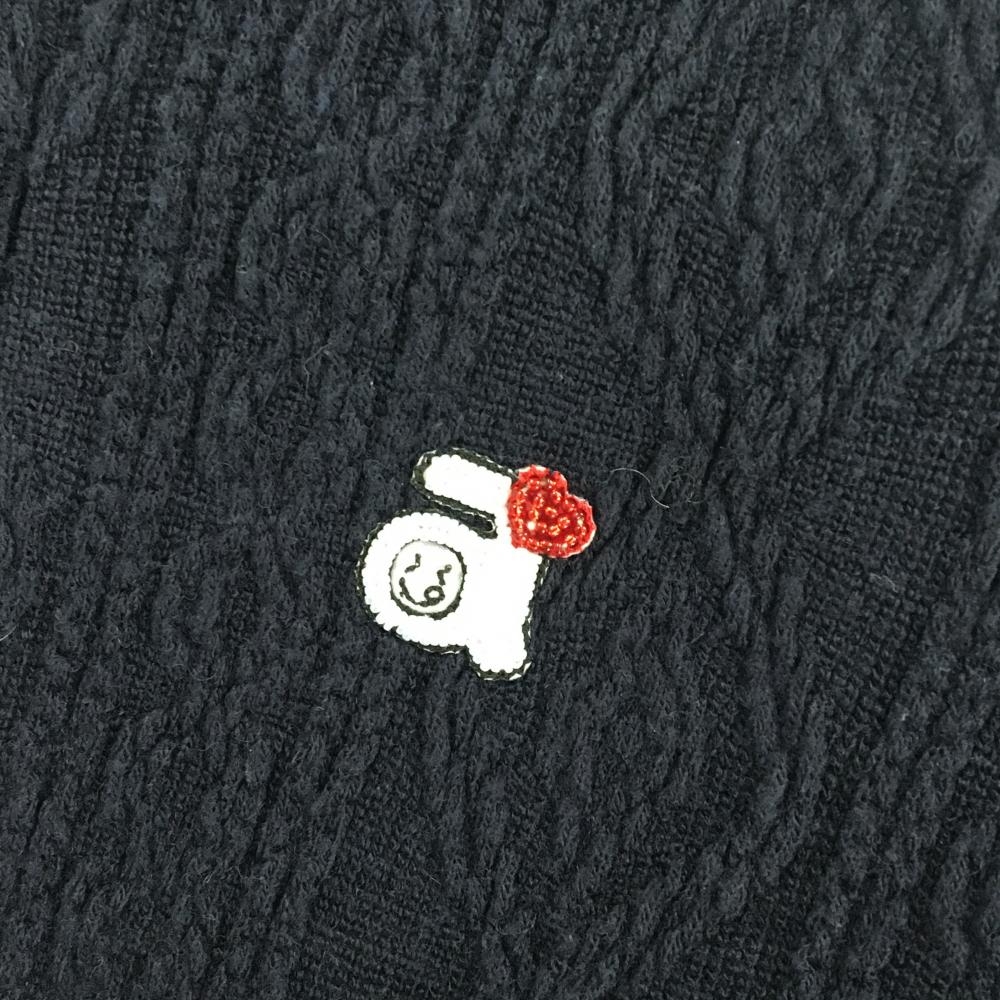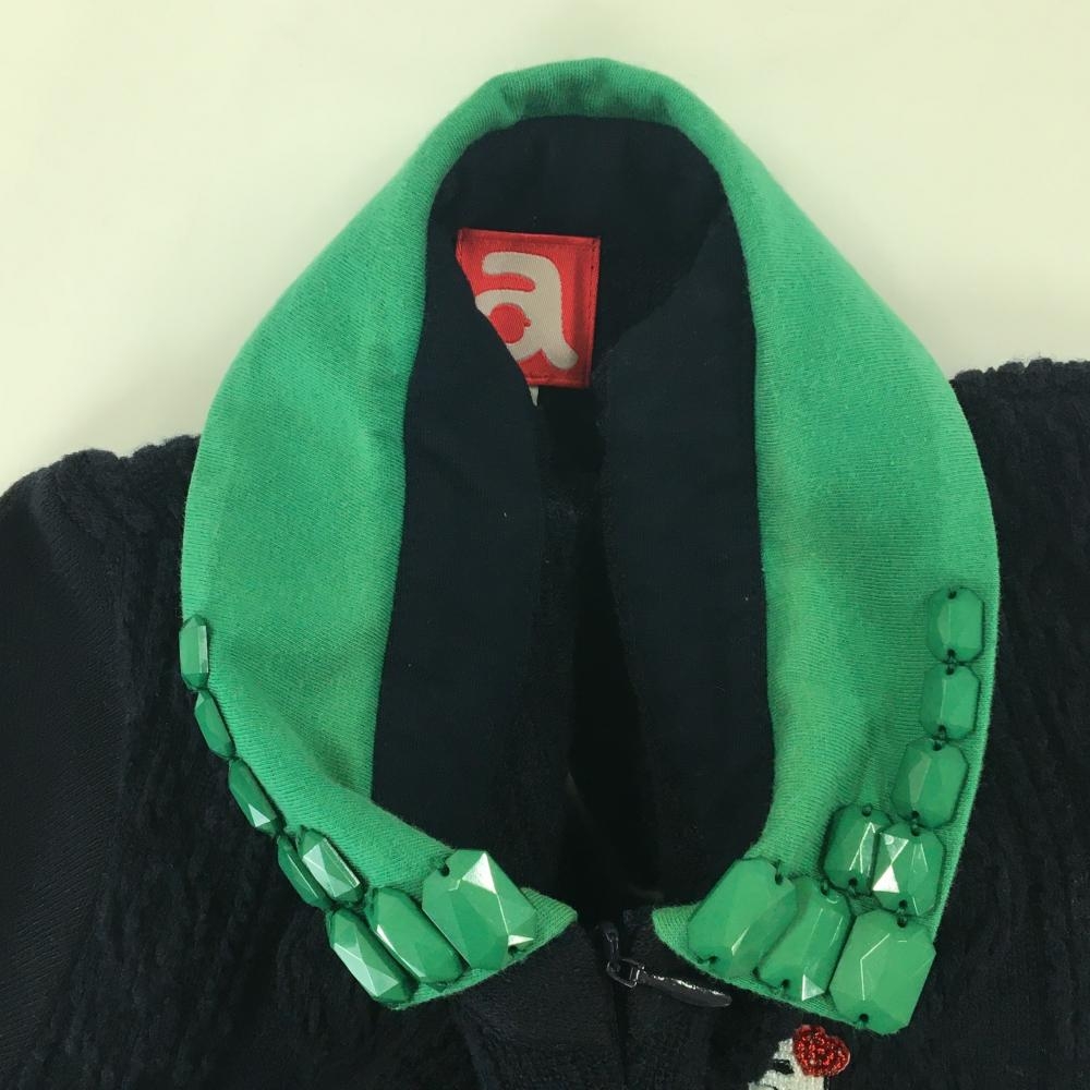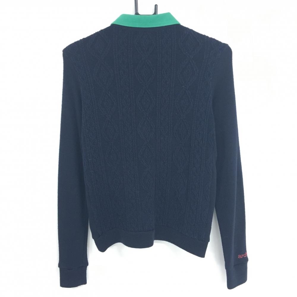 アルチビオ 襟付き長袖シャツ ネイビー 襟グリーン 身頃ケーブル柄 襟ビジュー ハーフジップ レディース 36(S) ゴルフウェア archivio