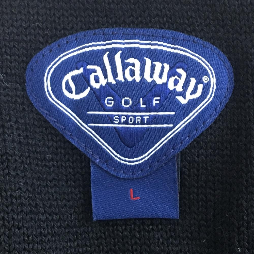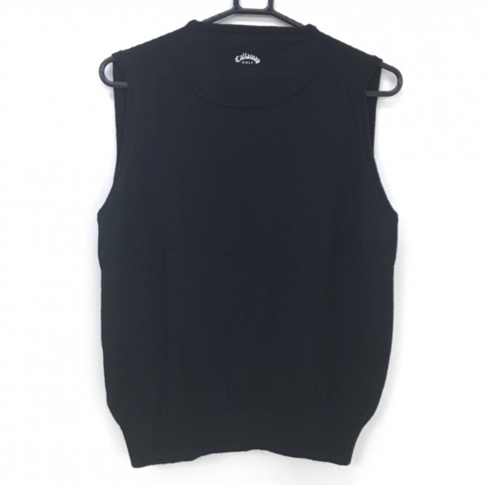【美品】キャロウェイ ニットベスト 黒 ロゴ刺しゅう Vネック ウール混 レディース L ゴルフウェア Callaway