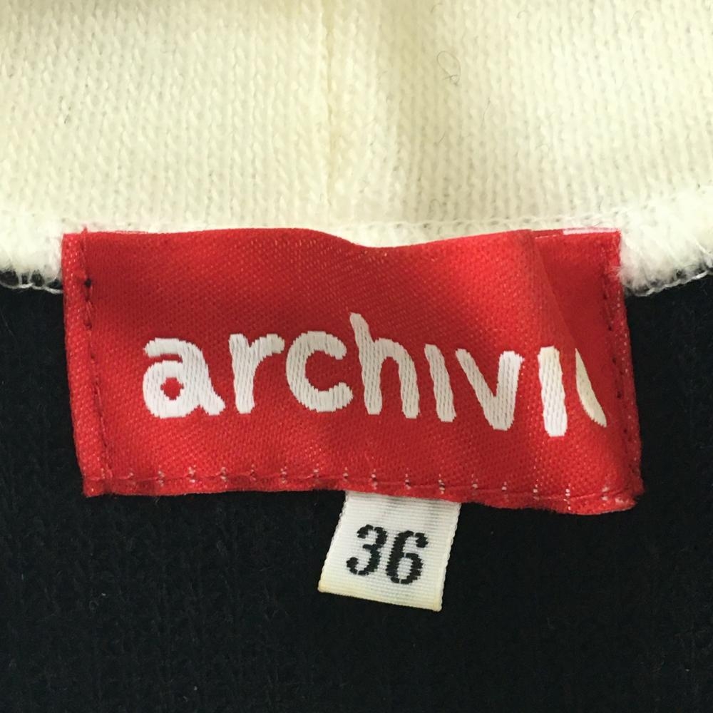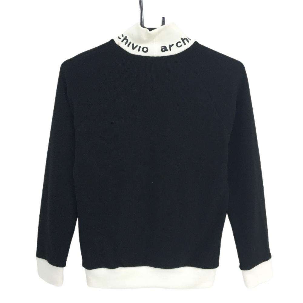 アルチビオ 切替セーター 黒×白 サイド・ネックロゴライン ウール混 レディース 36(S) ゴルフウェア archivio