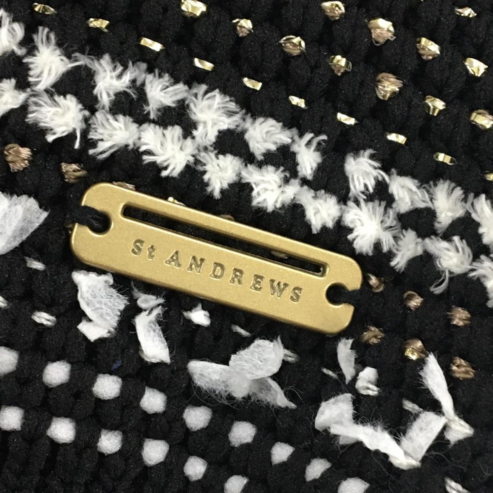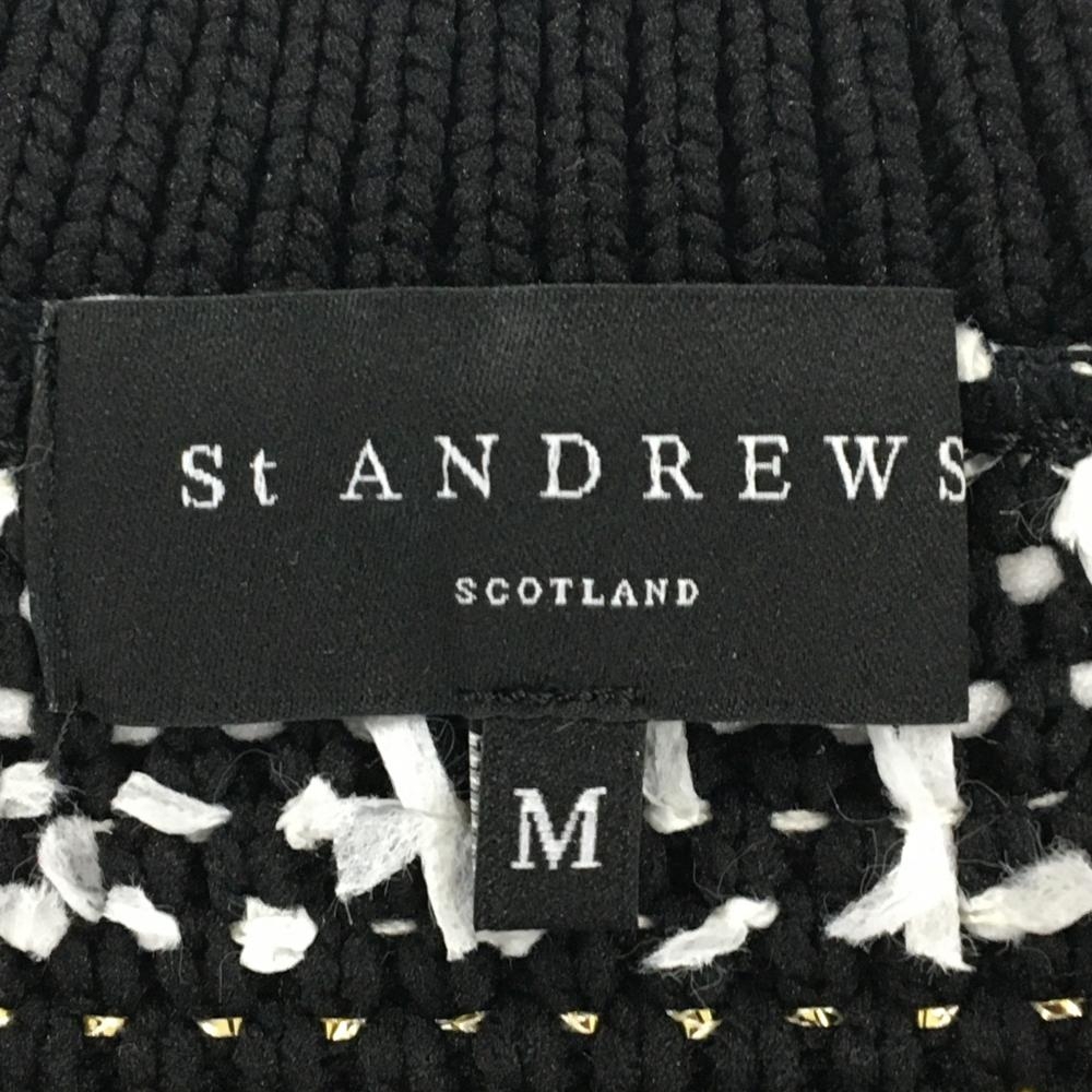 【超美品】セントアンドリュース ニットベスト 黒×白 Vネック 総柄編み地 レディース M ゴルフウェア St ANDREWS
