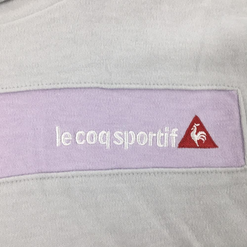 【美品】ルコックゴルフ 長袖ハイネックシャツ ライトグレー×ライトパープル ロゴ刺しゅう レディース L ゴルフウェア le coq sportif