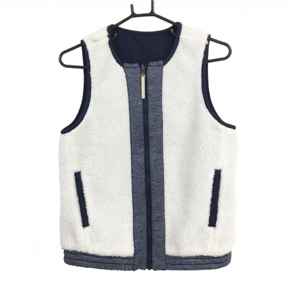 【超美品】アディダス リバーシブルアウターベスト ネイビー×白 一部地模様 裏ボア レディース M ゴルフウェア adidas