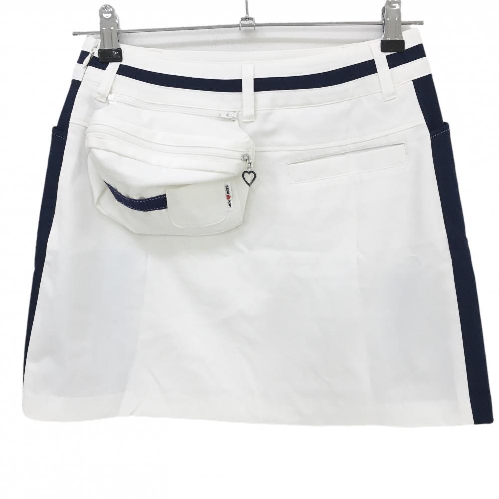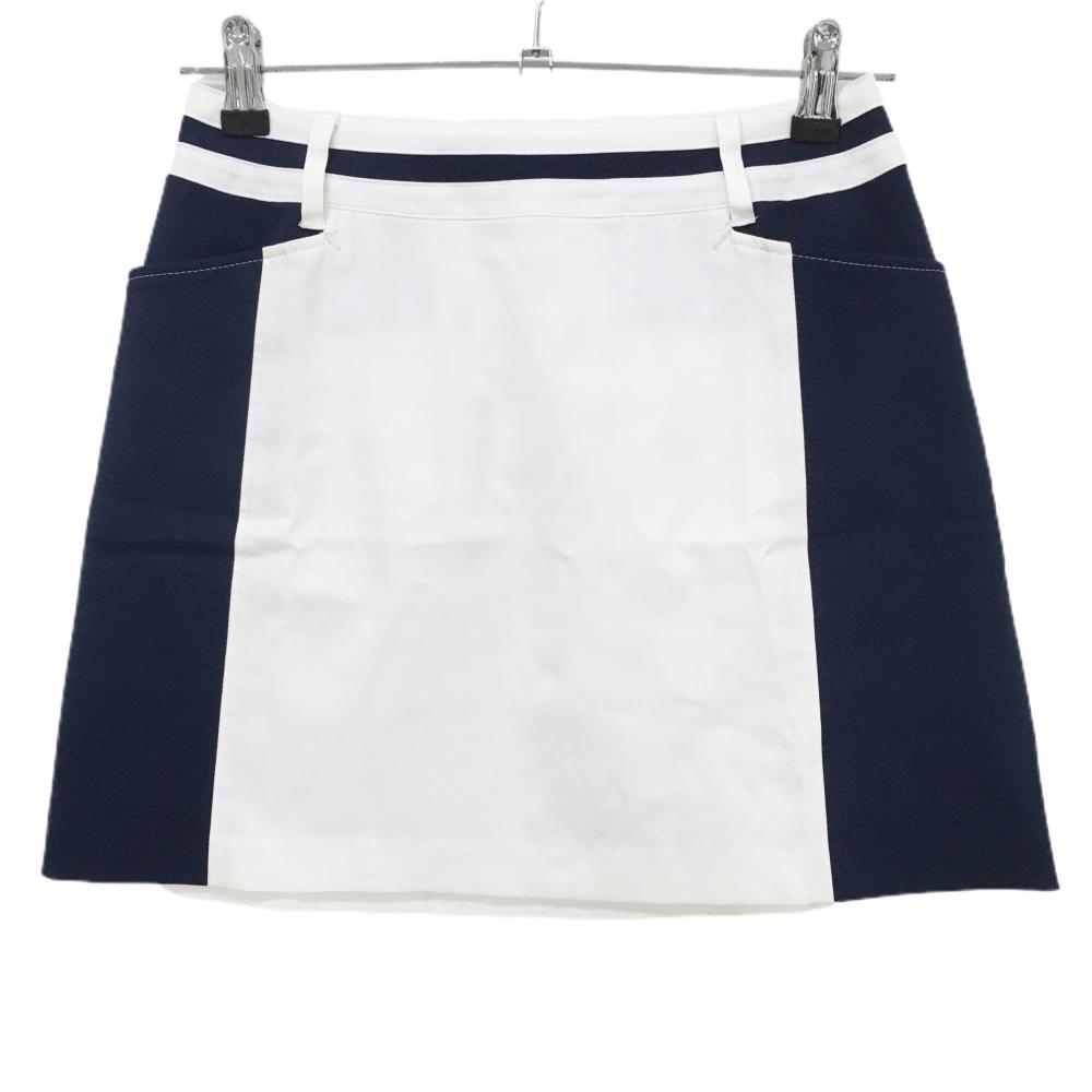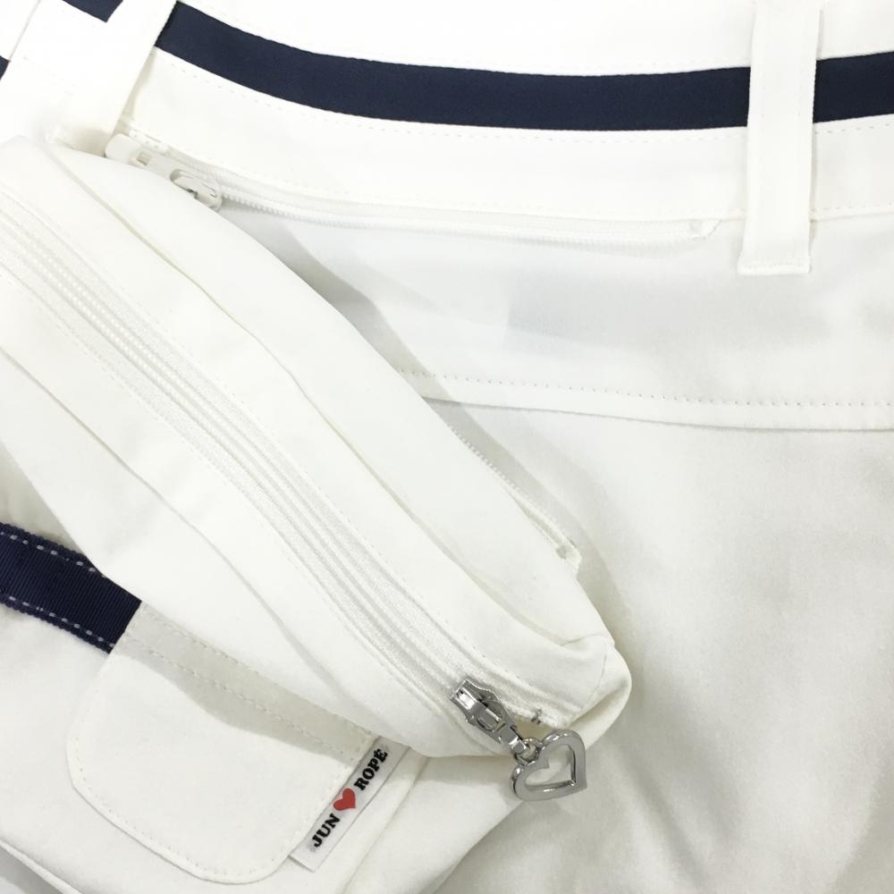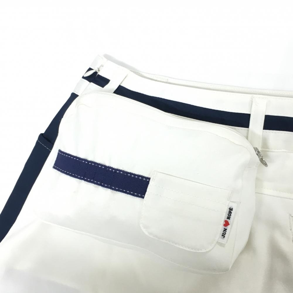 【超美品】ジュンアンドロペ スカート 白×ネイビー ストレッチ ポーチ取外し可 インナーパンツ付 レディース M ゴルフウェア JUN&ROPE