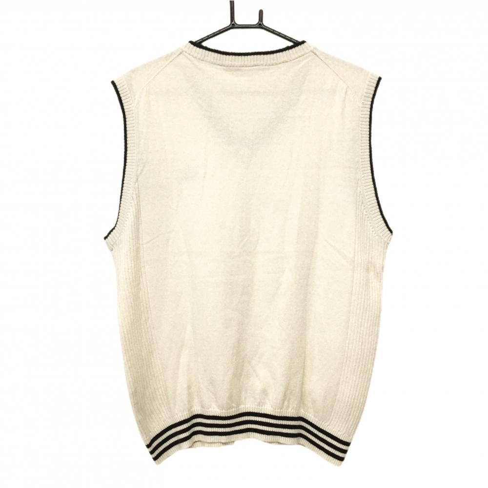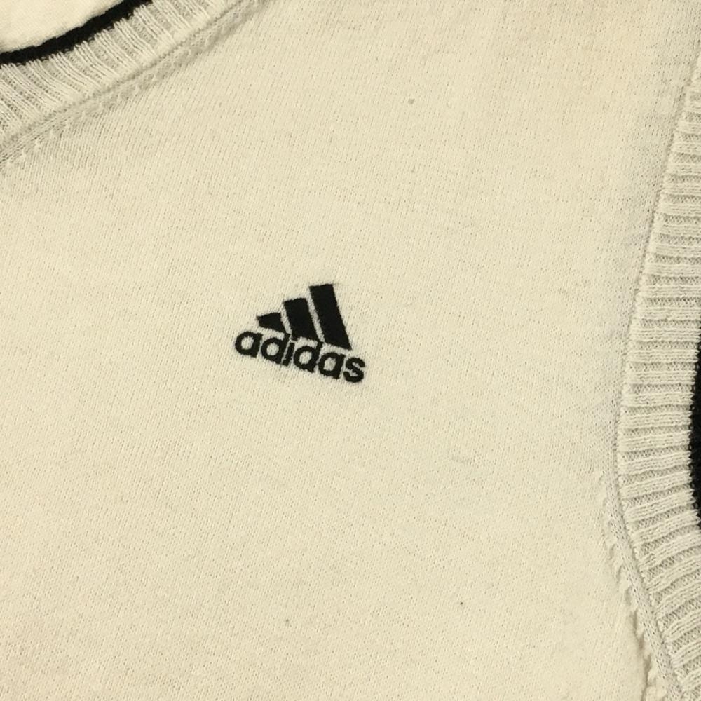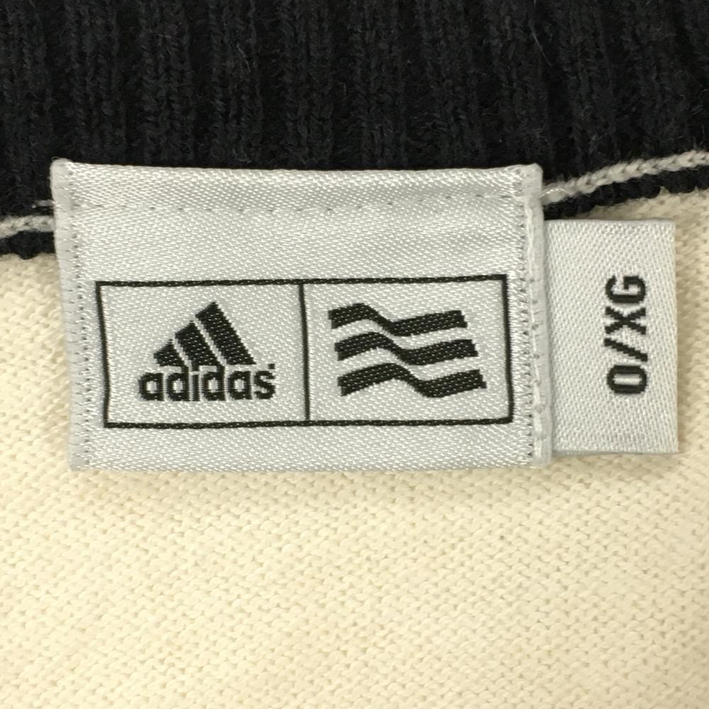 アディダス ニットベスト 白×黒 ロゴ刺しゅう Vネック ウール混 メンズ O/XG ゴルフウェア adidas