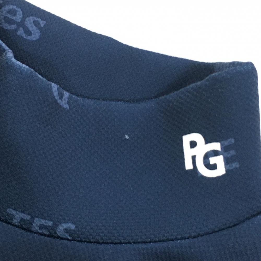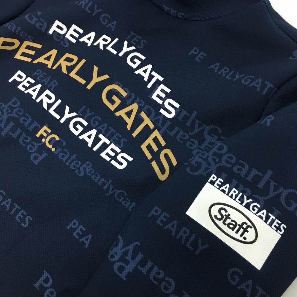 【美品】パーリーゲイツ 長袖ハイネックシャツ ネイビー系 英字ロゴ総柄 レディース 0(S) ゴルフウェア PEARLY GATES