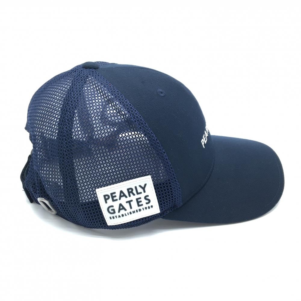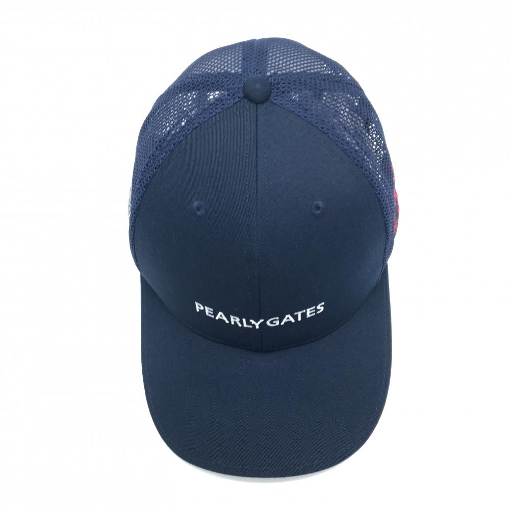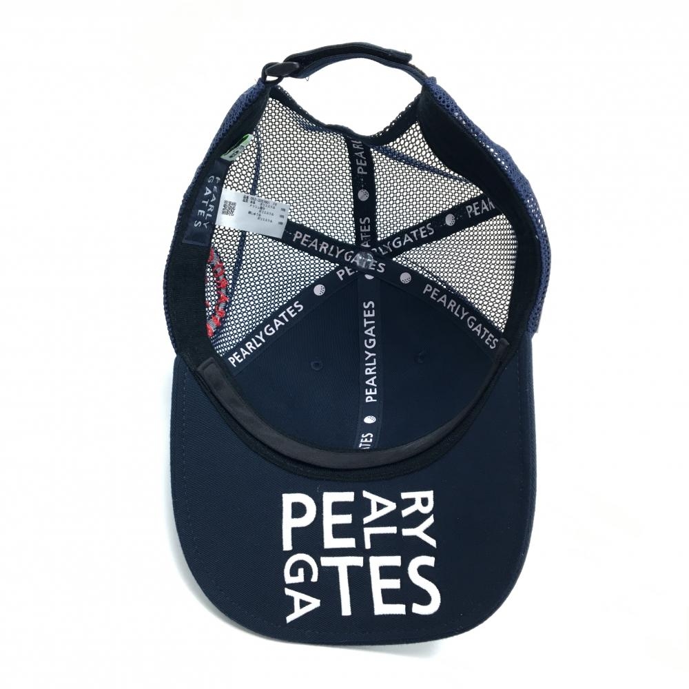 【超美品】パーリーゲイツ メッシュキャップ ネイビー×白 シリコンワッペン ニコちゃん スマイル FR ゴルフウェア PEARLY GATES
