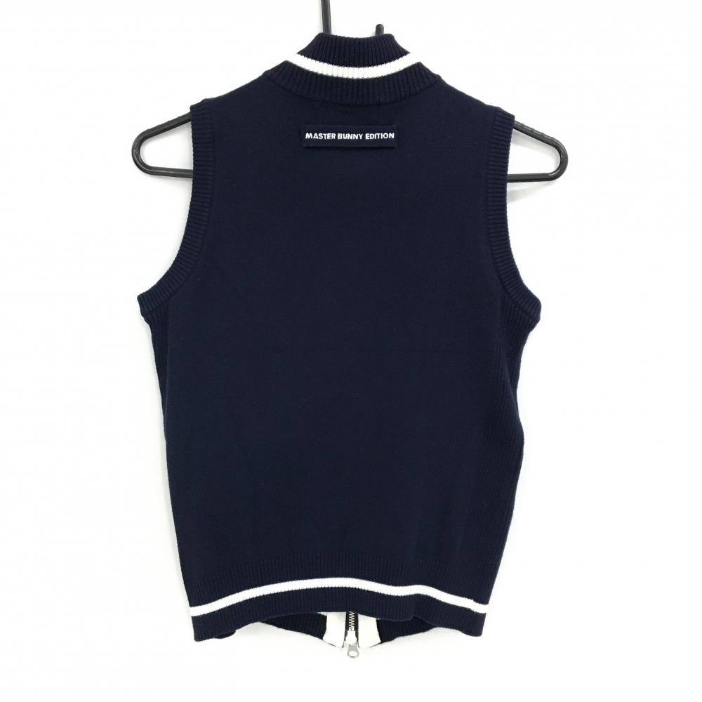 マスターバニー ニットジップベスト ネイビー×白 胸ロゴ ダブルジップ レディース 0(S) ゴルフウェア MASTER BUNNY EDITION