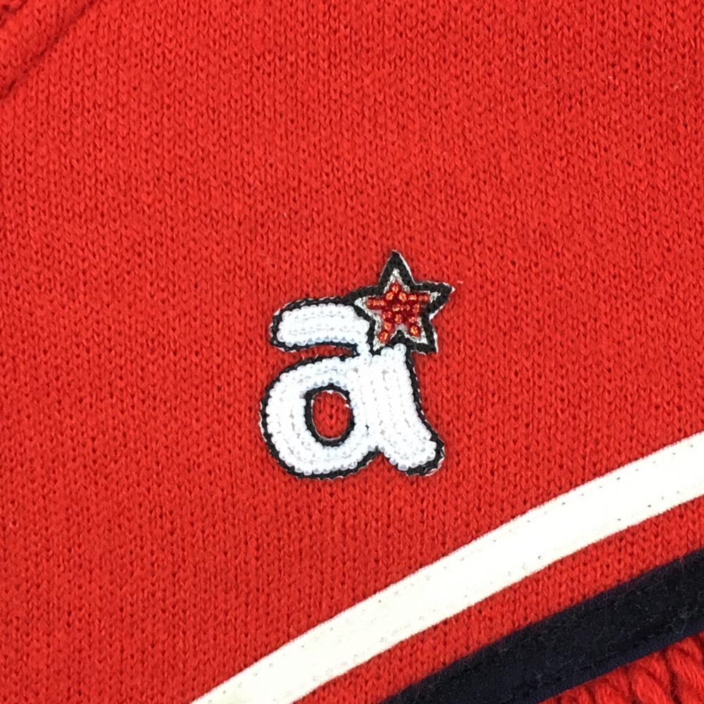 アルチビオ ニットジャケット レッド×白×ネイビー 胸フリンジ ウール混 レディース 36(S) ゴルフウェア archivio