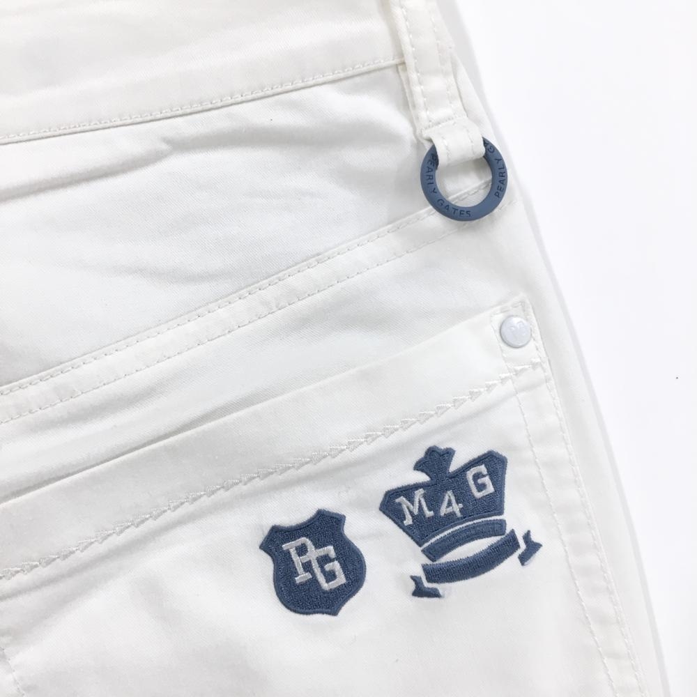 パーリーゲイツ パンツ 白 ロゴブルーグレー 複数ポケット レディース 1(M) ゴルフウェア PEARLY GATES