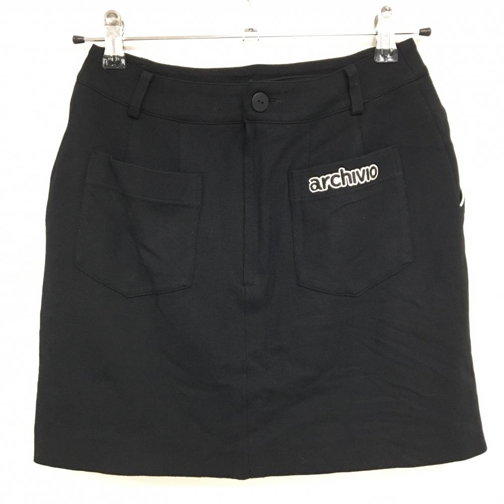 【美品】アルチビオ ストレッチスカート 黒 ポケット口パイピング 裏地付 レディース 36(S) ゴルフウェア archivio