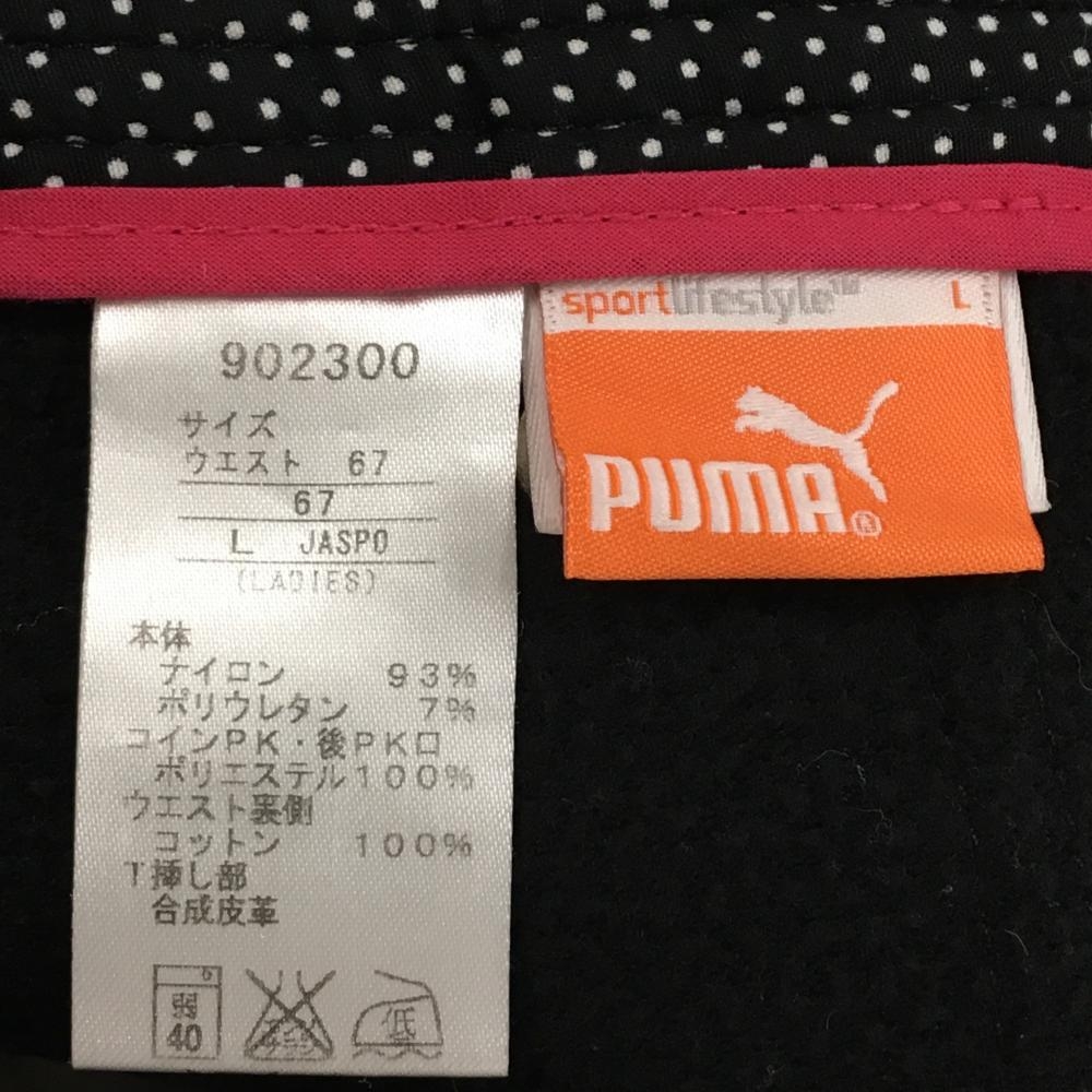 【美品】プーマ スカート 黒 裾ロゴ 裏起毛 ストレッチ レディース L ゴルフウェア PUMA