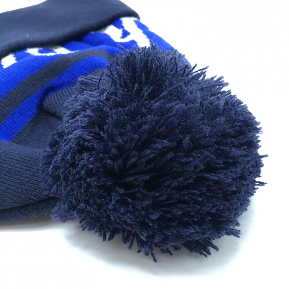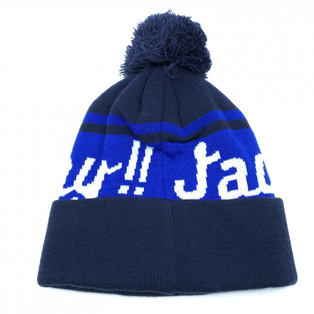 【超美品】ジャックバニー ニット帽 ネイビー×ブルー ロゴ ポンポン付 FR ゴルフウェア Jack Bunny