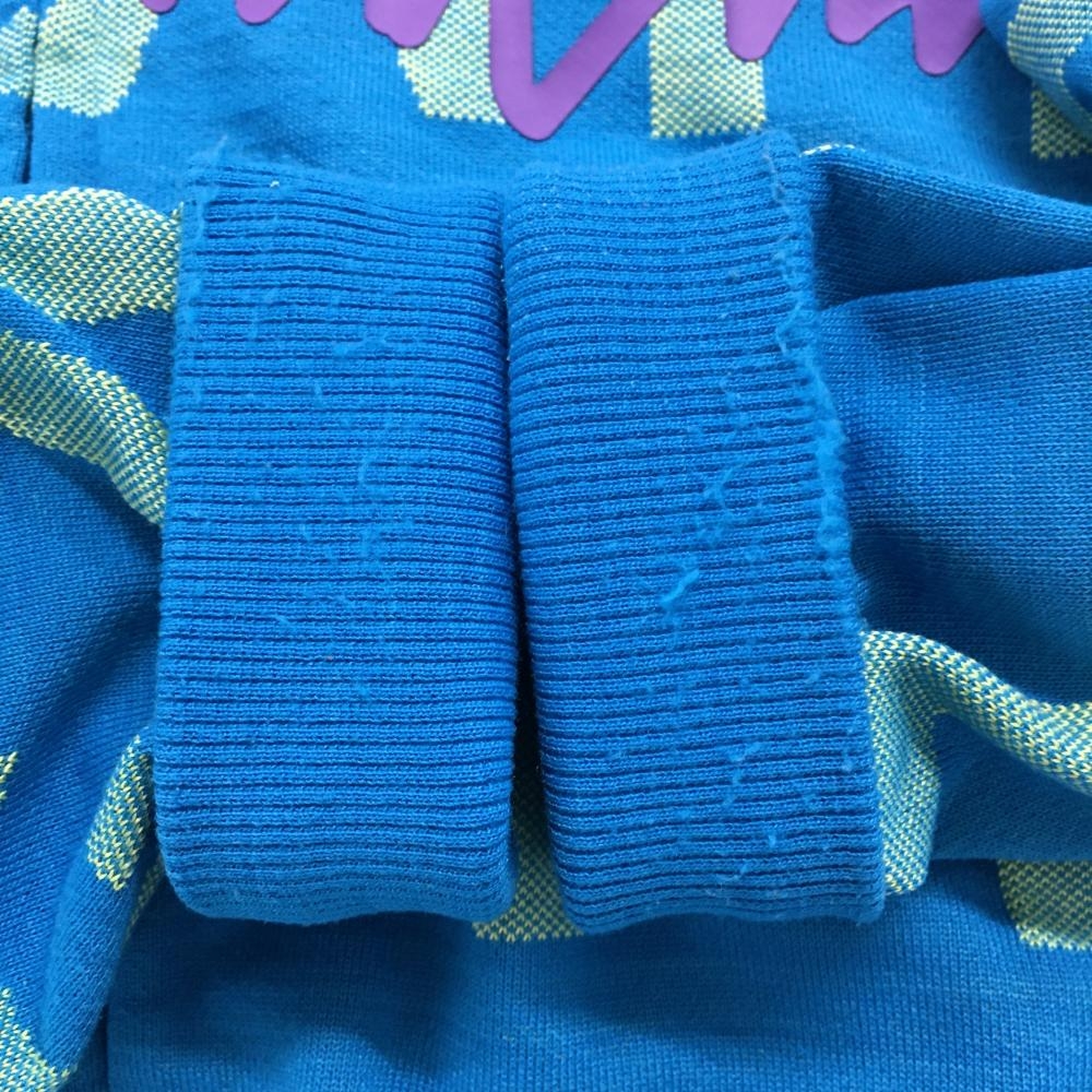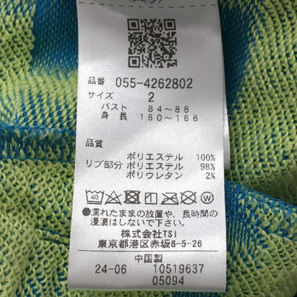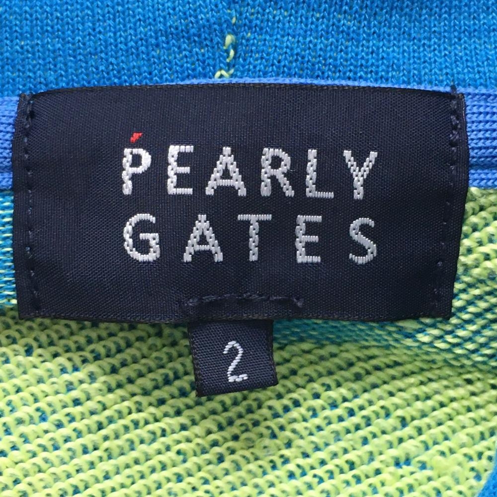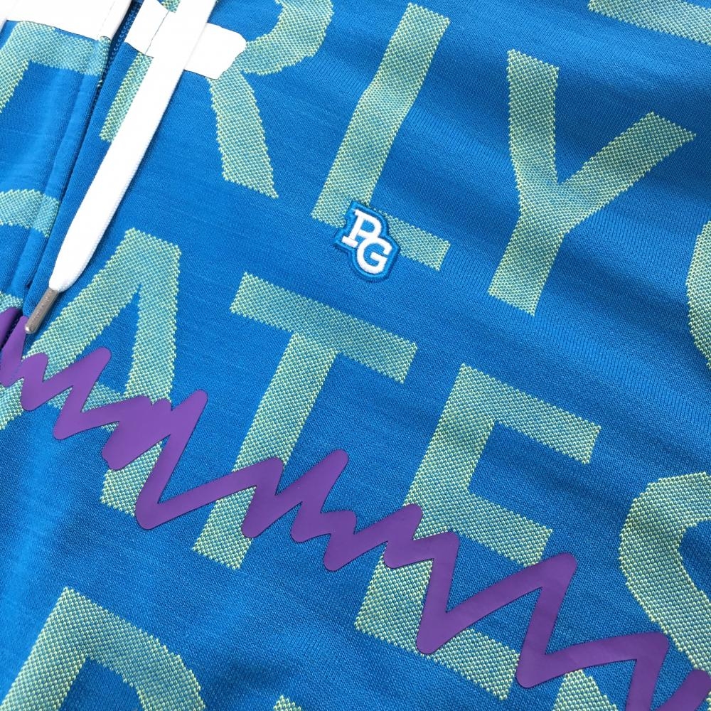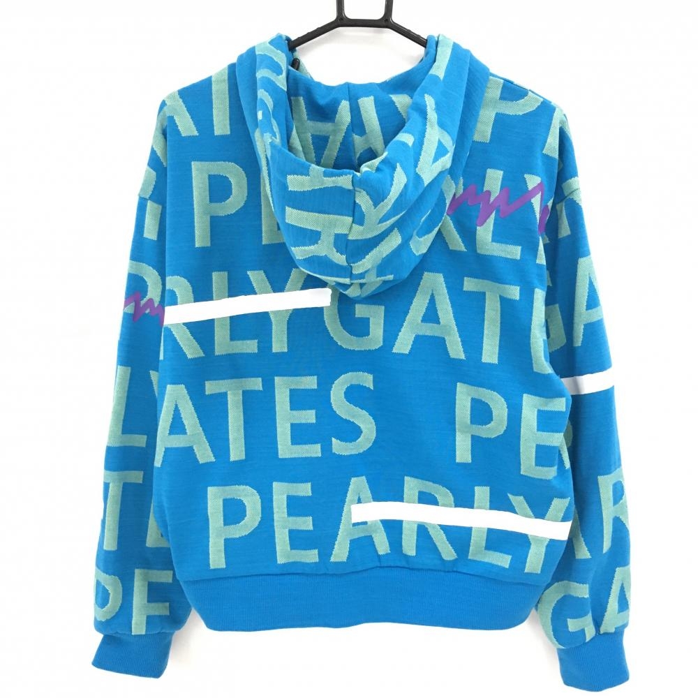 【美品】パーリーゲイツ ジップパーカー ライトブルー×イエロー ロゴ総柄 レディース 2(L) ゴルフウェア 2024年モデル PEARLY GATES
