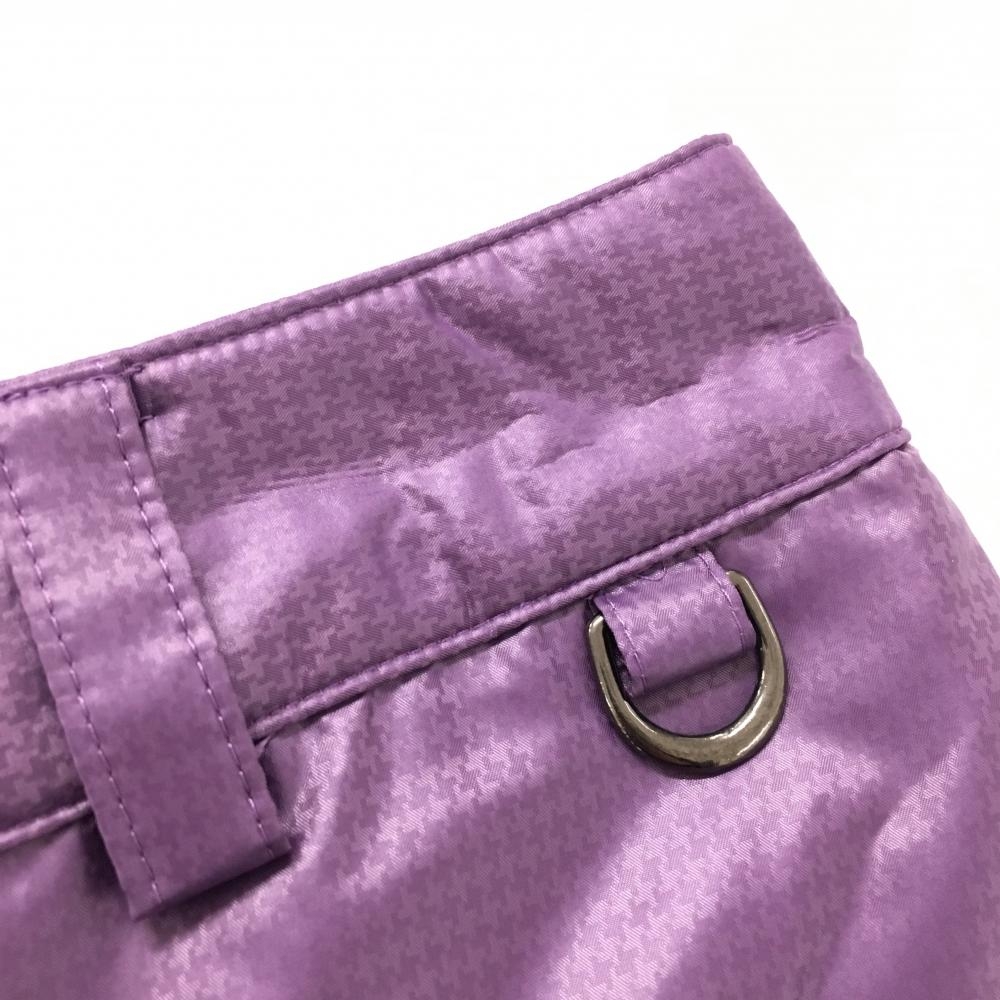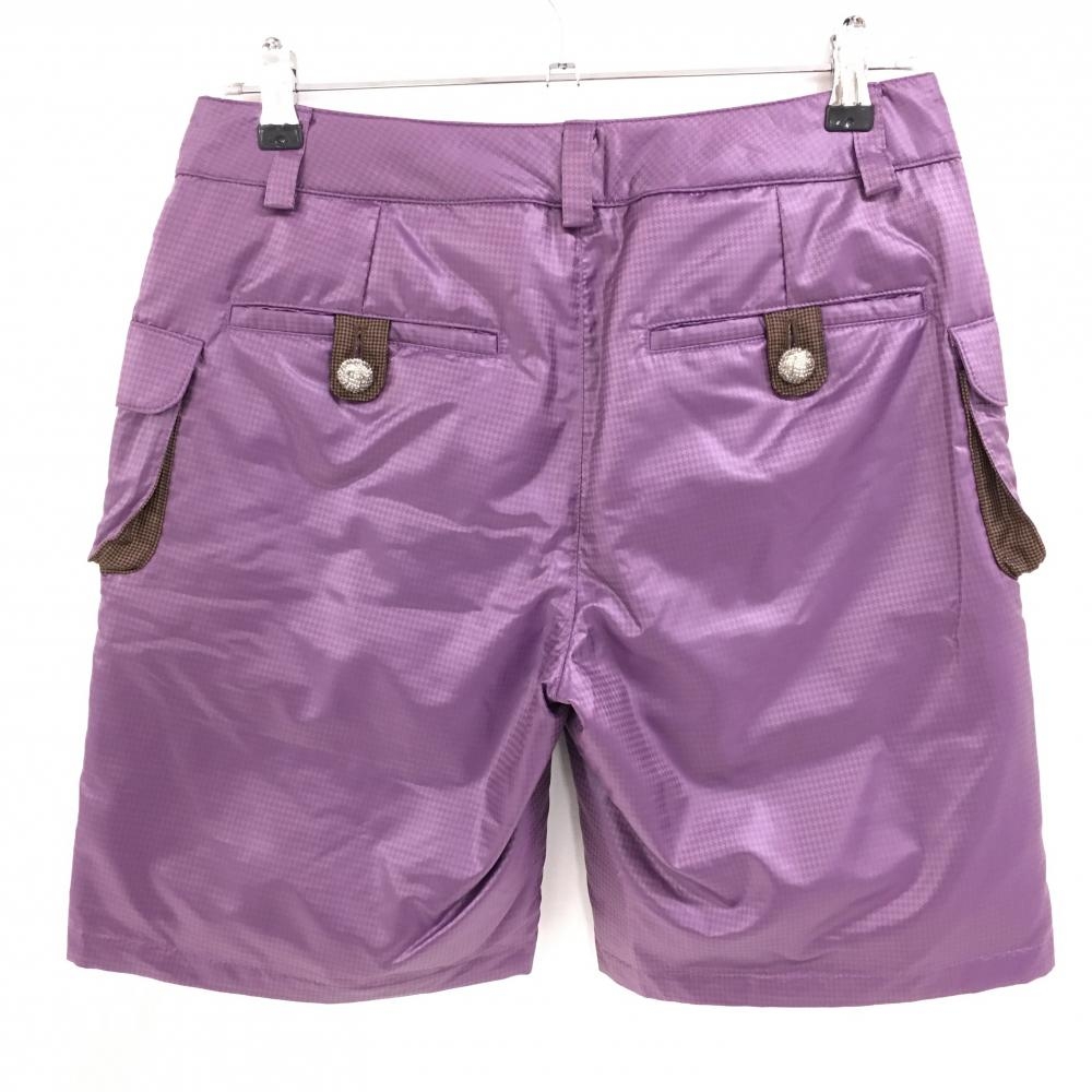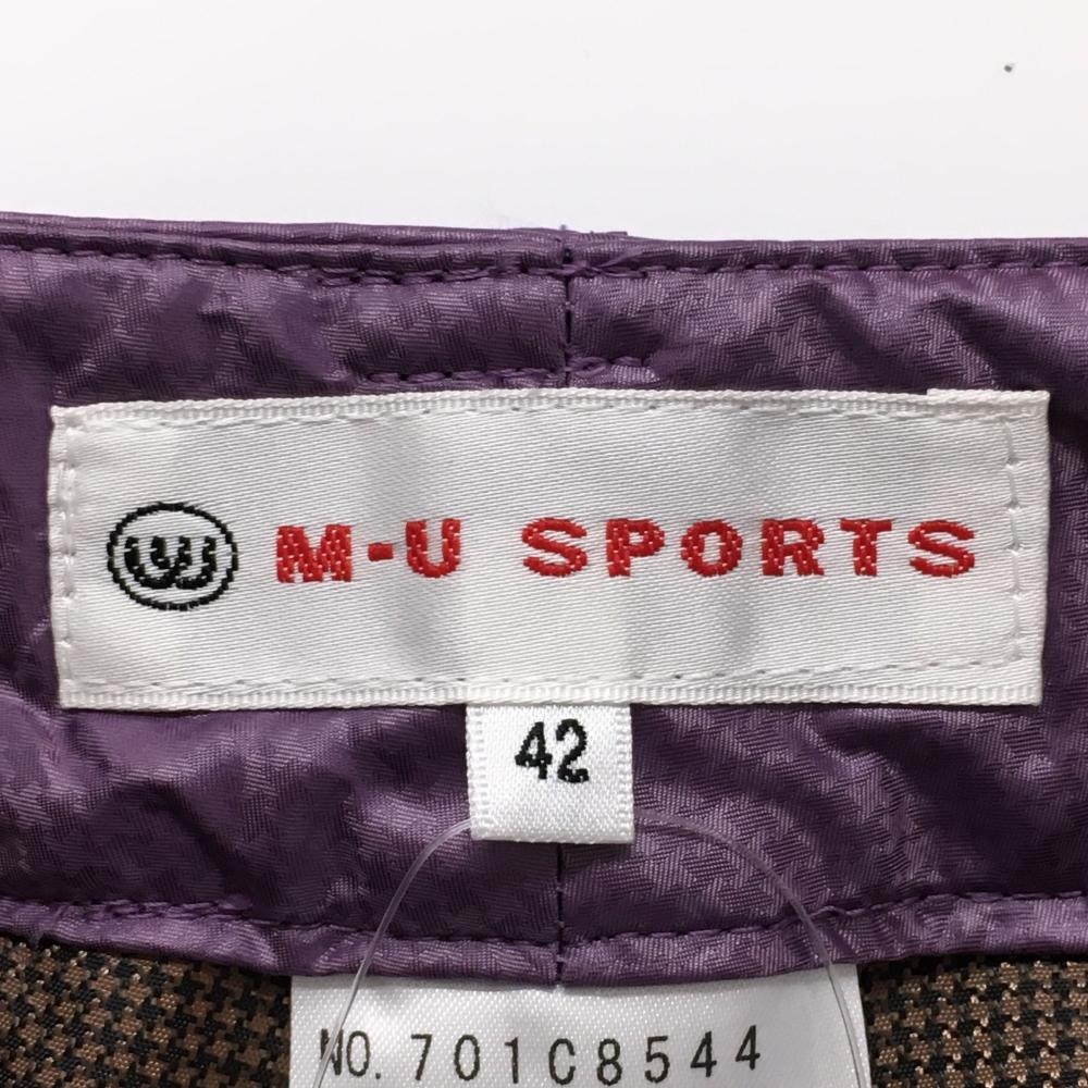 【美品】MUスポーツ ダウンハーフパンツ パープル 千鳥格子 裾ロールアップ可 レディース 42(L) ゴルフウェア M・U SPORTS