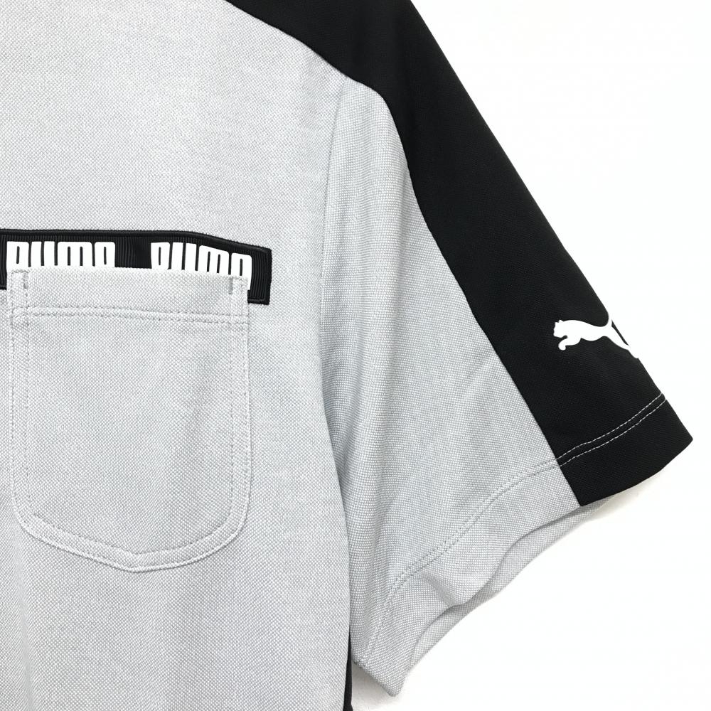 【未使用品】プーマ 半袖ポロシャツ グレー×黒 胸ポケット ボタンダウン DRYCELL メンズ M ゴルフウェア PUMA