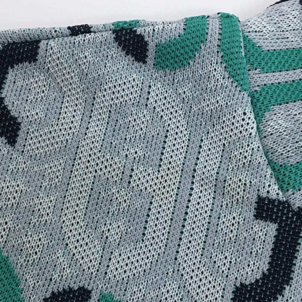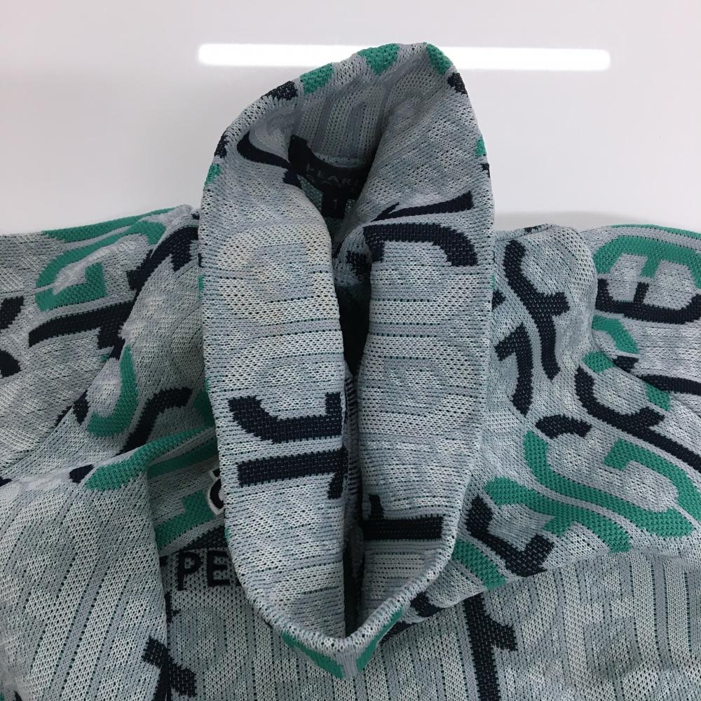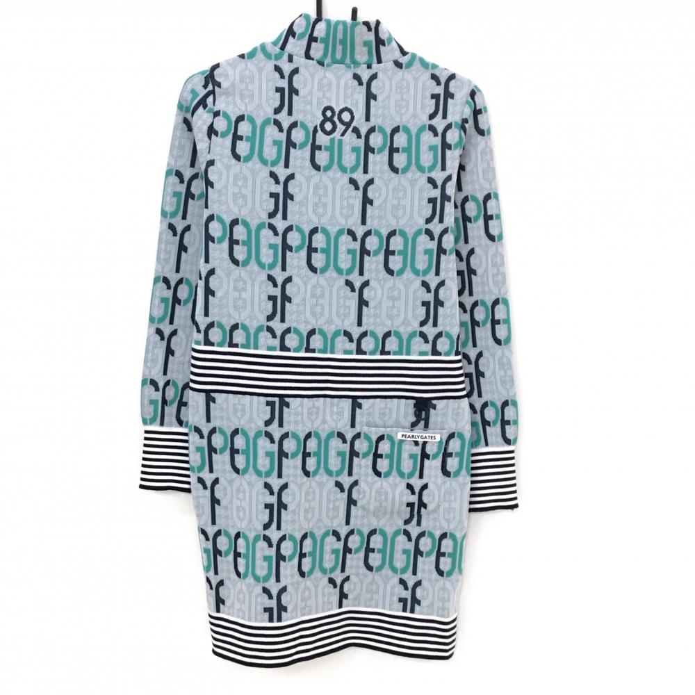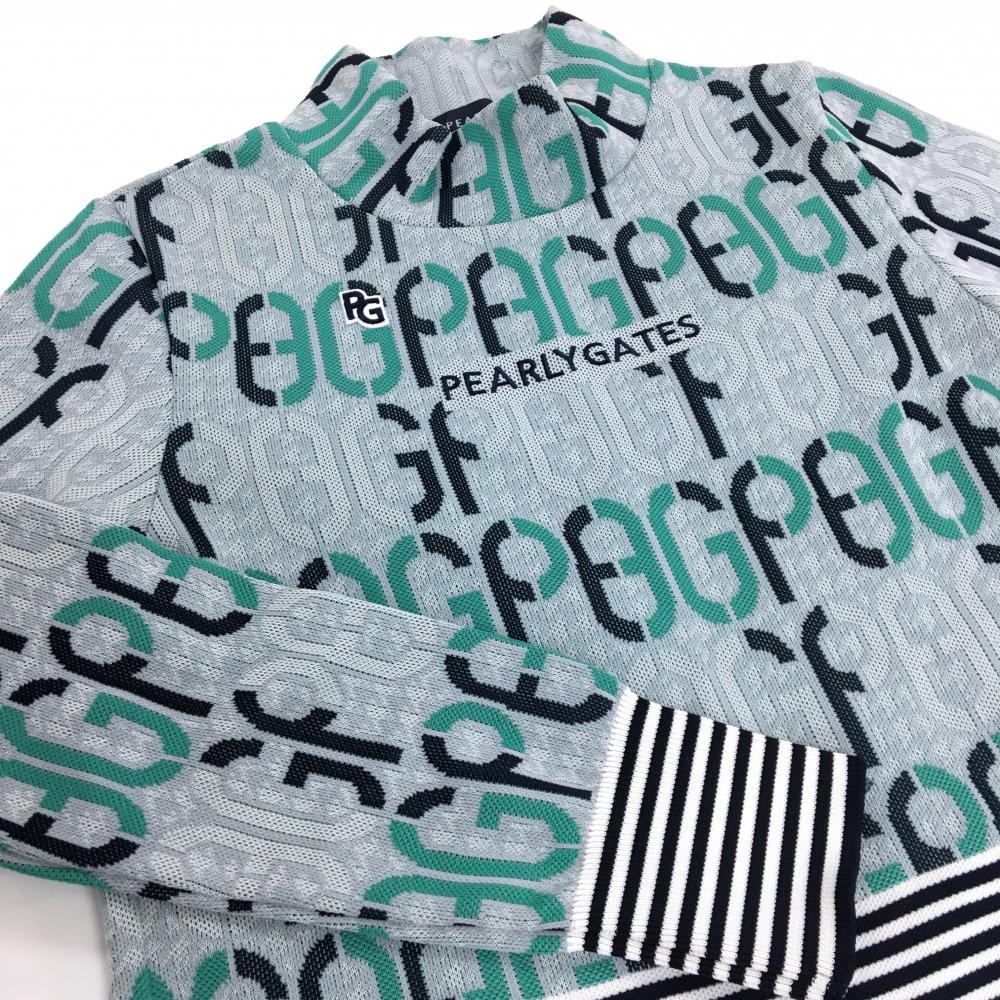 パーリーゲイツ 長袖ニットワンピース グレー×グリーン 英字総柄 ハイネック レディース 1(M) ゴルフウェア 2024年モデル PEARLY GATES