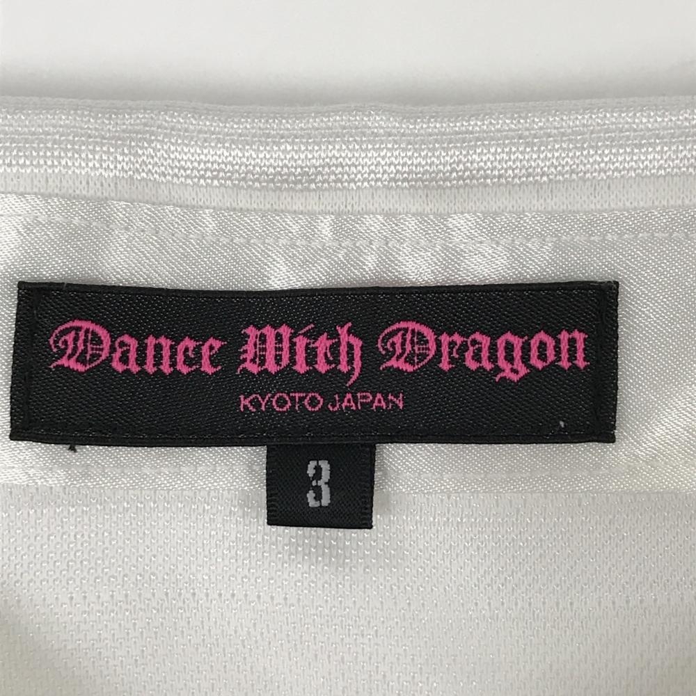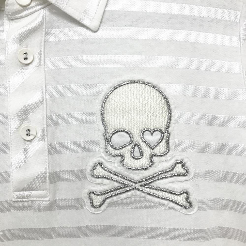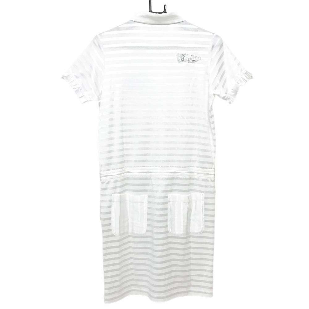 【美品】ダンスウィズドラゴン 半袖ポロワンピース 白 ボーダー地模様 スカル レディース 3(L) ゴルフウェア Dance With Dragon