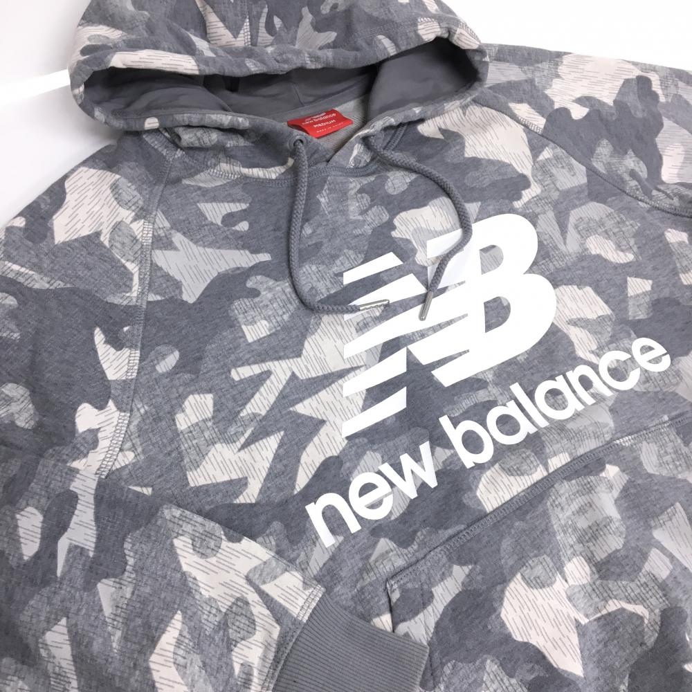 ニューバランス パーカー グレー×白 迷彩 カモフラ柄 ロゴプリント レディース MEDIUM ゴルフウェア New Balance