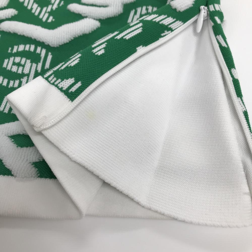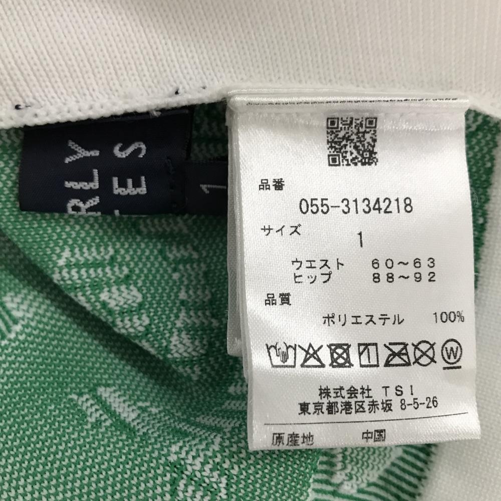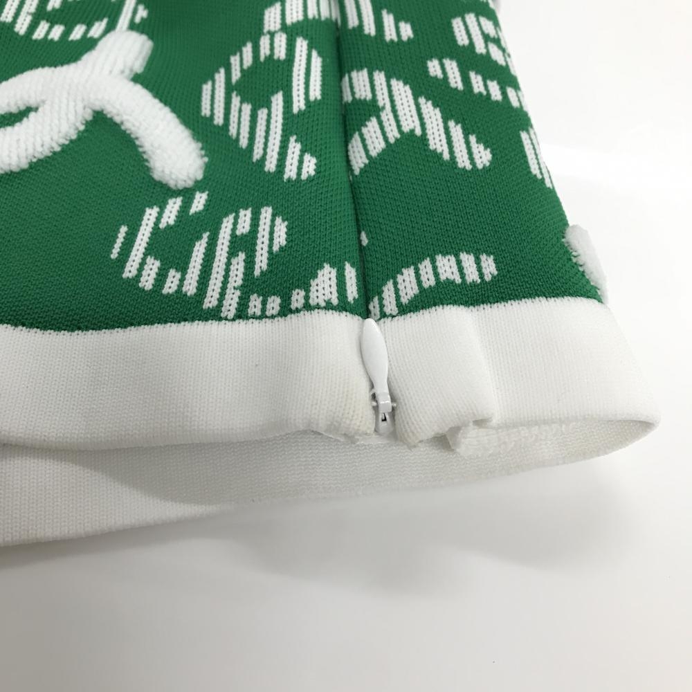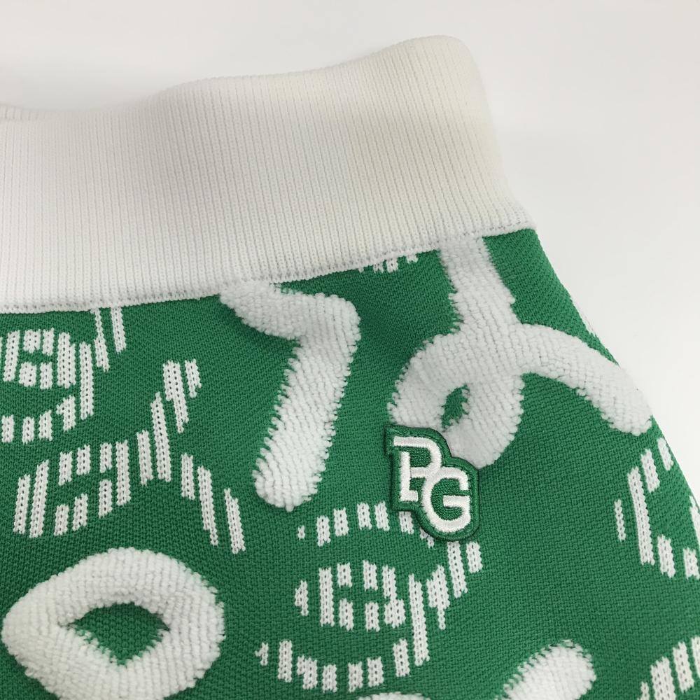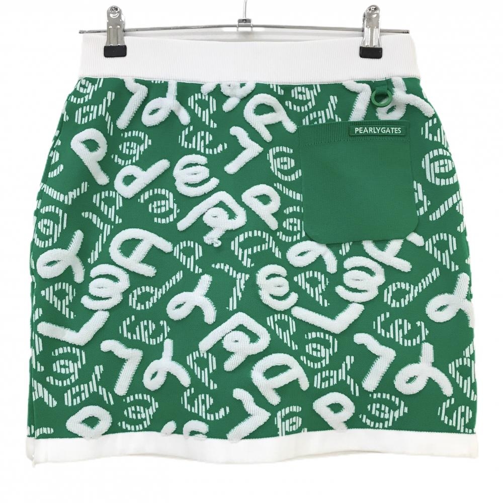 【美品】パーリーゲイツ ニットスカート グリーン×白 総柄 ウエストゴム レディース 1(M) ゴルフウェア 2023年モデル PEARLY GATES