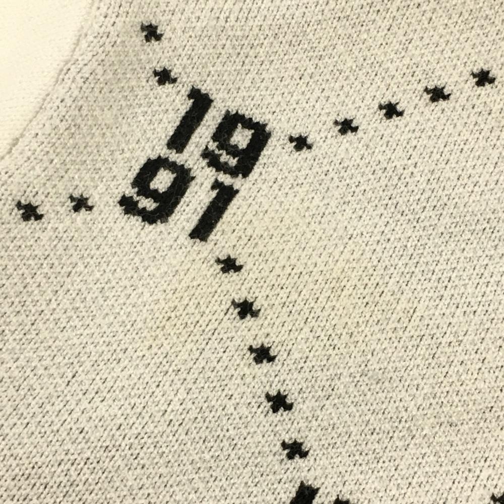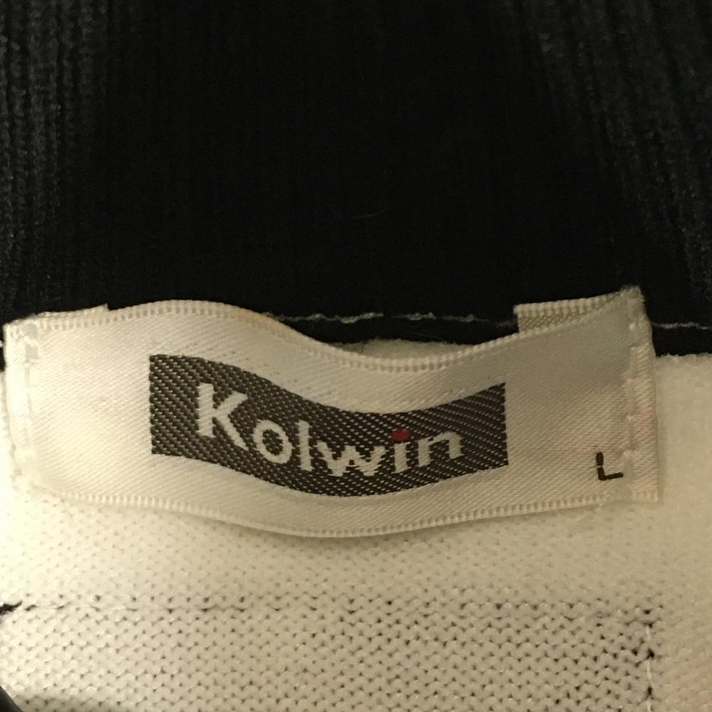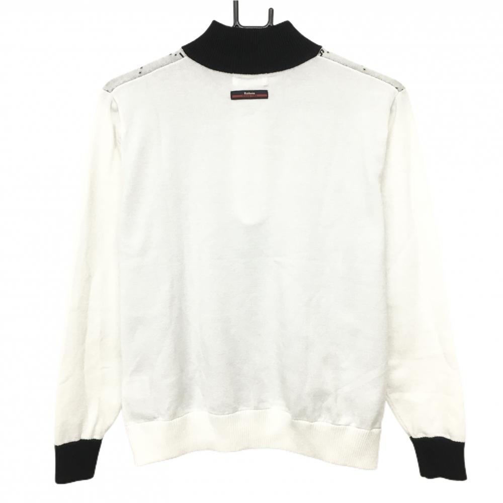【美品】コルウィン ハイネックセーター 白×黒 前身頃総柄 ハーフジップ ニット レディース L ゴルフウェア Kolwin