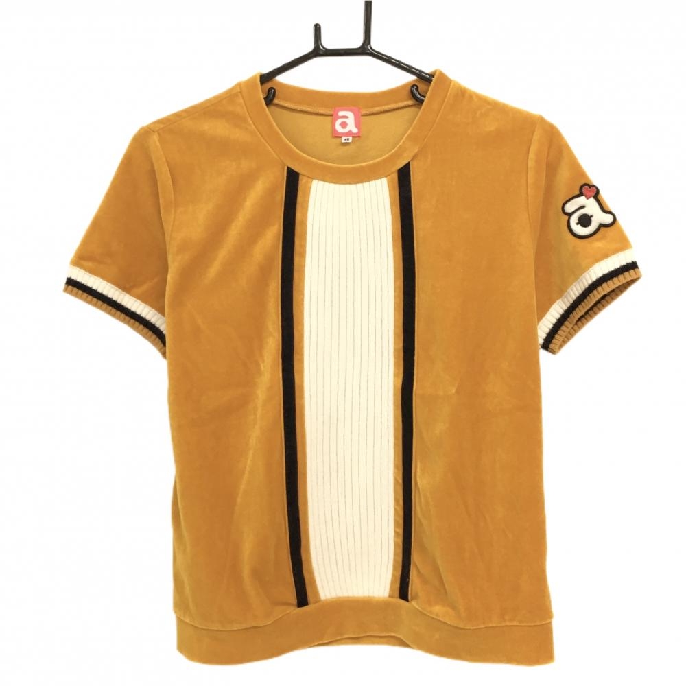 アルチビオ ネックウォーマー付半袖シャツ オレンジ系×白 起毛 一部ニット レディース 40(L) ゴルフウェア archivio