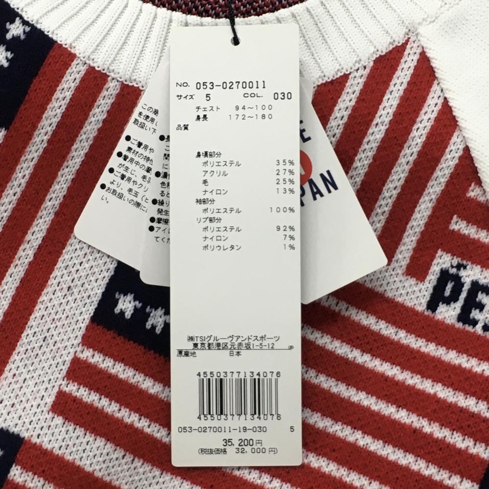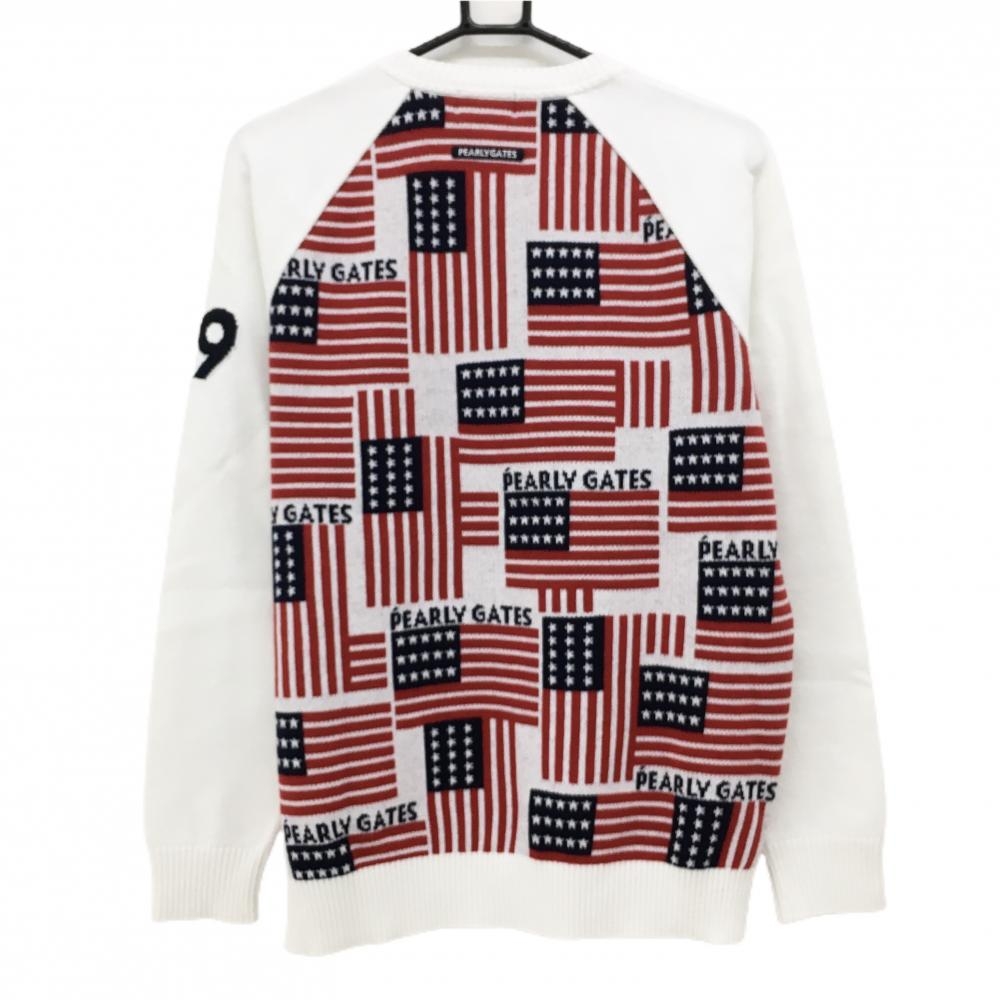 【新品】パーリーゲイツ セーター 白×レッド×ネイビー 総柄 星条旗 ニット メンズ 5(L) ゴルフウェア PEARLY GATES