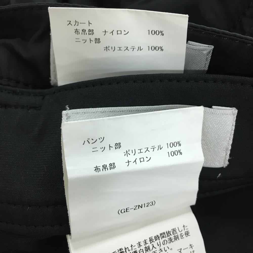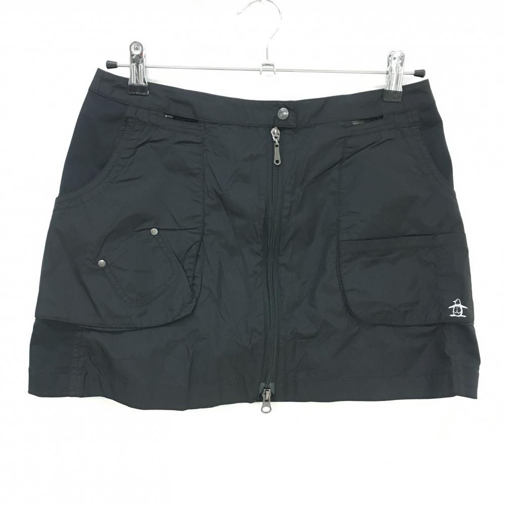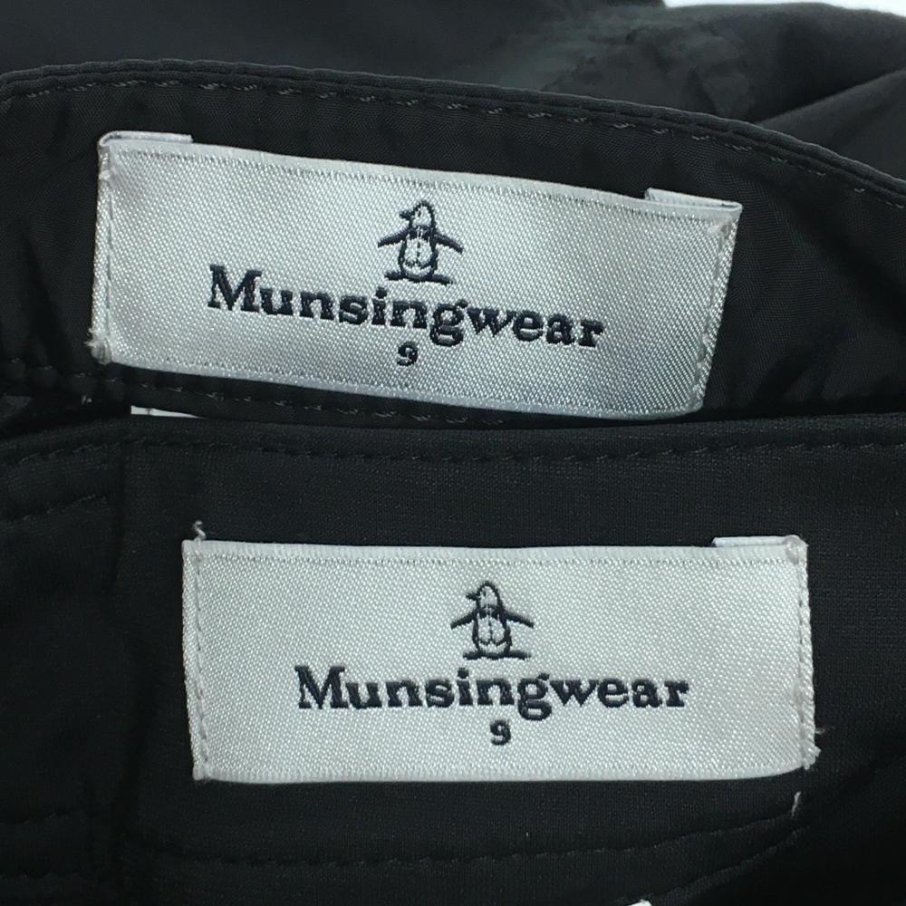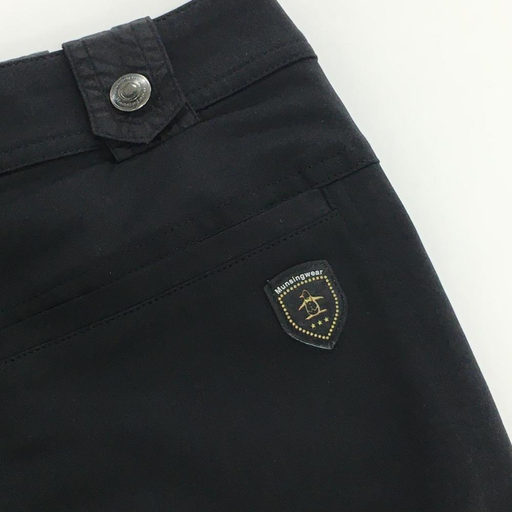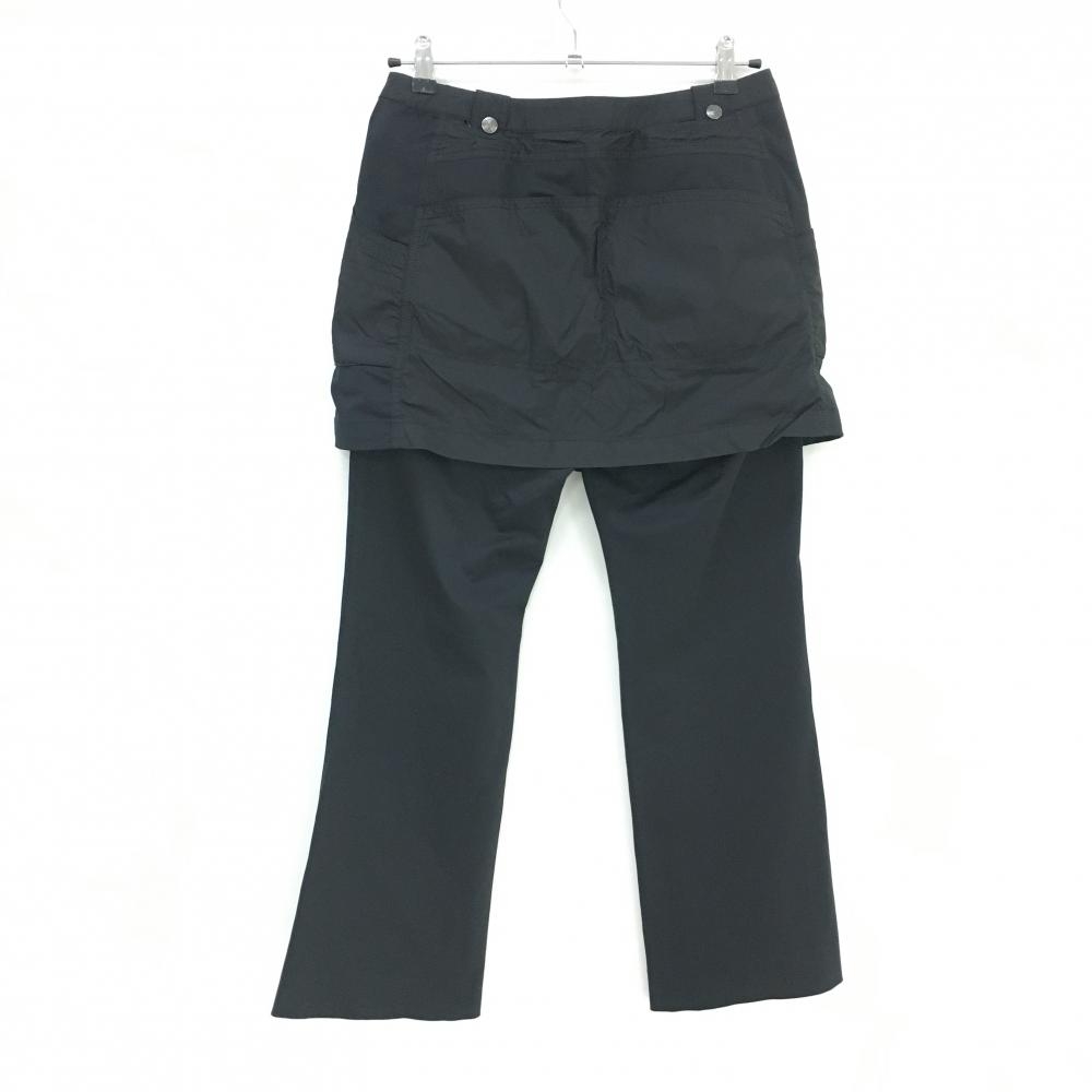 【美品】マンシングウェア 3WAYスカート付きパンツ 黒 異素材 スカート着脱可 ロゴプリント レディース 9 ゴルフウェア Munsingwear