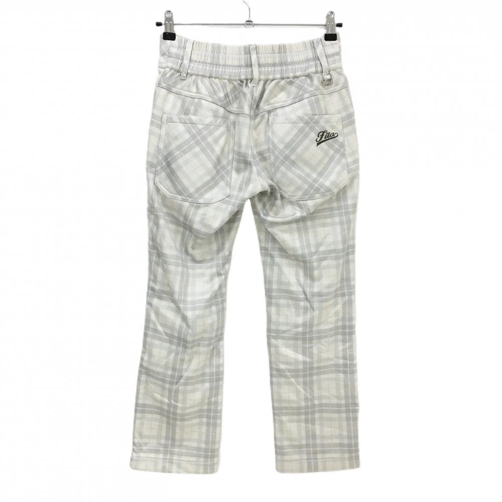 フィラゴルフ パンツ 白×ライトグレー チェック ロゴ刺しゅう 裏微起毛 レディース M ゴルフウェア FILA GOLF