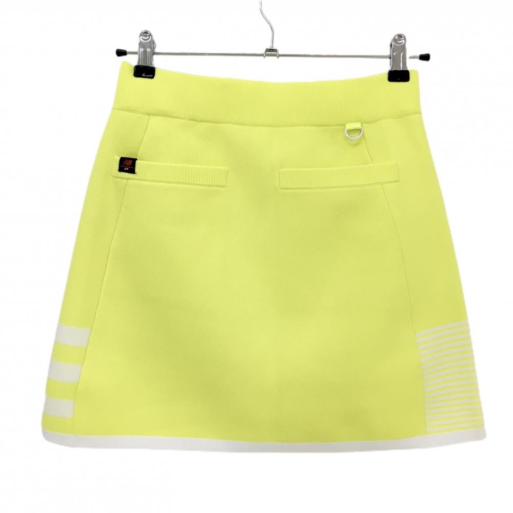 【超美品】ニューバランスゴルフ ニットスカート ネオンイエロー サイドボーダー ロゴプリント レディース 0 ゴルフウェア New Balance