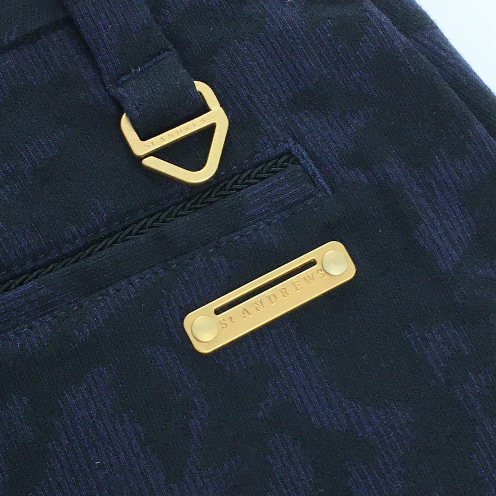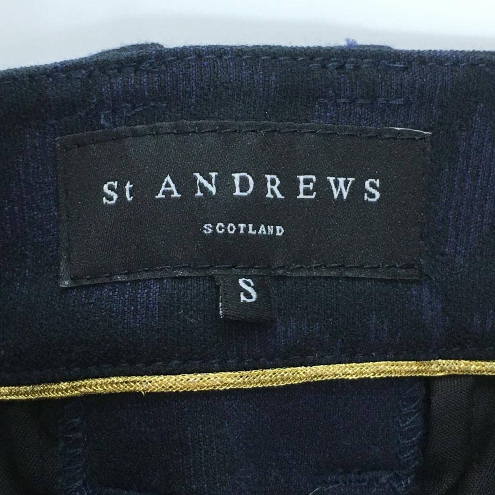 【美品】セントアンドリュース スカート ネイビー×黒 花柄 ロゴゴールド レディース S ゴルフウェア St ANDREWS