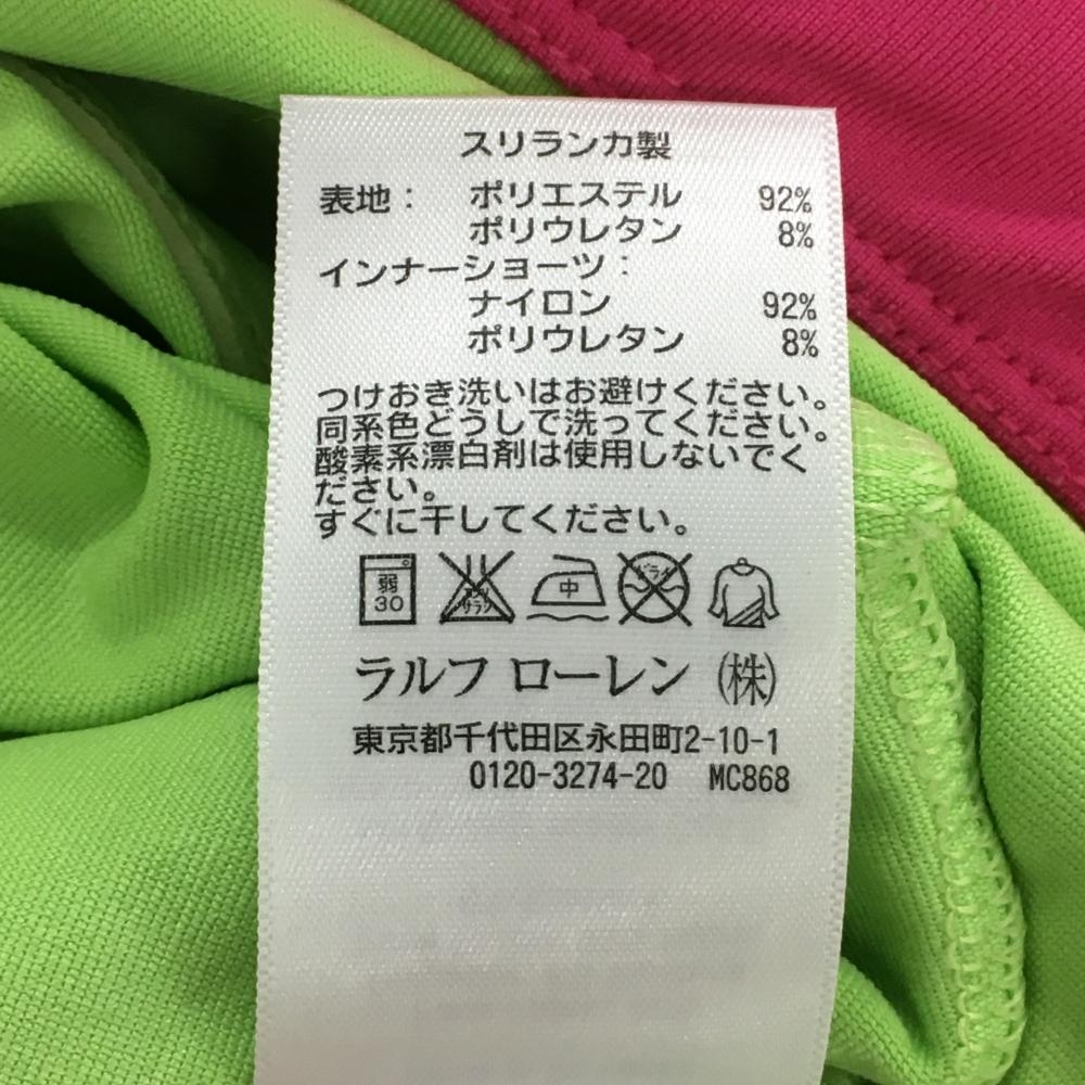 ポロゴルフ スカート ピンク×ライトグリーン ロゴ刺しゅう ストレッチ 内側インナーパンツ レディース S ゴルフウェア Ralph Lauren