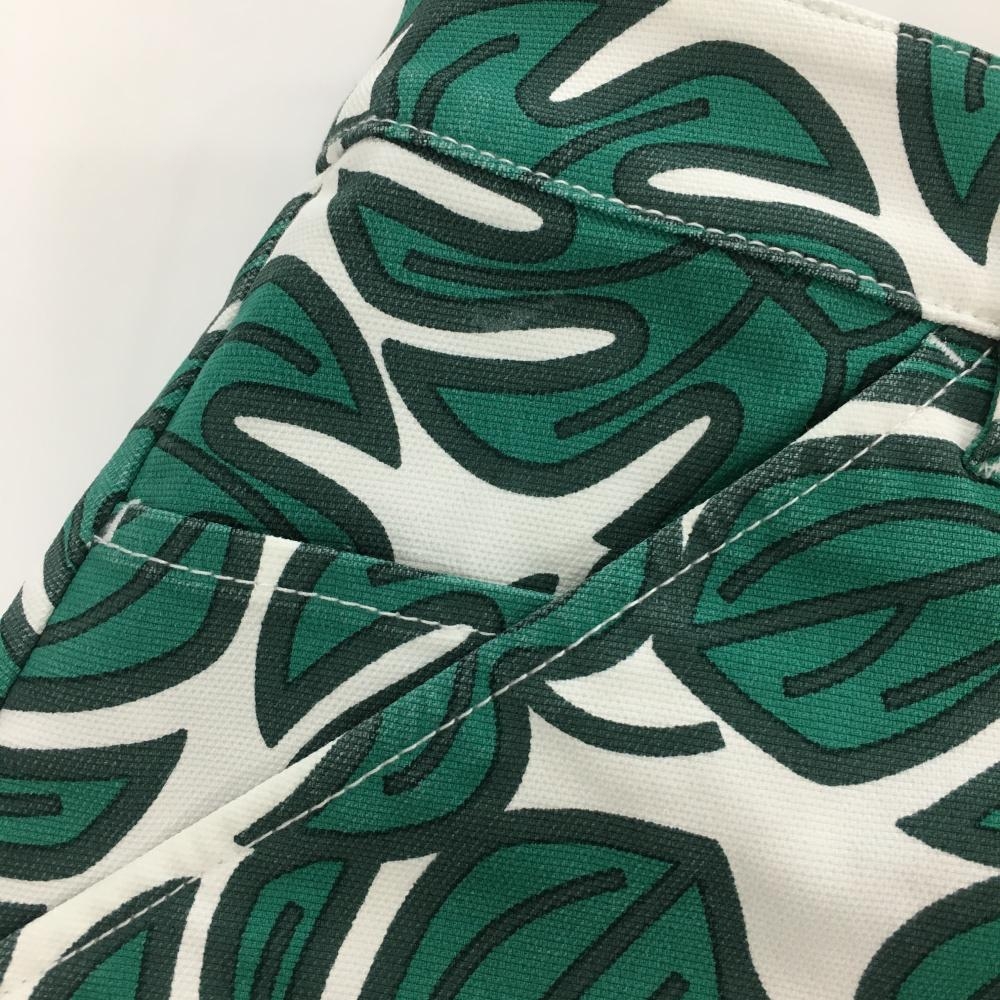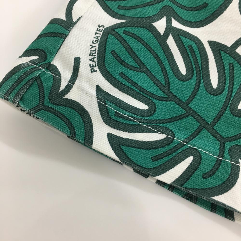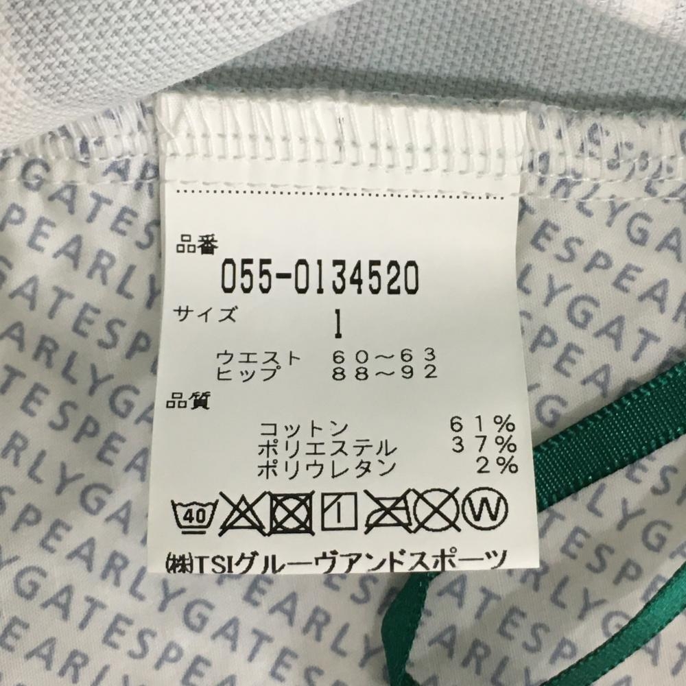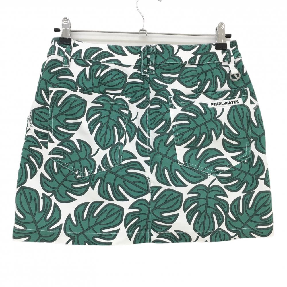 【美品】パーリーゲイツ スカート グリーン×白 リーフ柄 フロントジップ レディース 1(M) ゴルフウェア PEARLY GATES