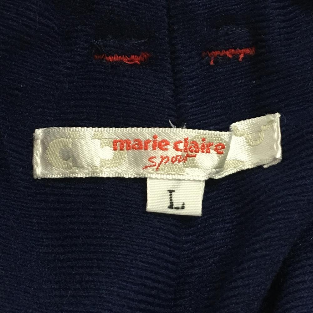 マリクレールスポール 中綿パンツ ネイビー×レッド ロゴ刺しゅう 裏微起毛 ウエストゴム レディース L ゴルフウェア marie claire