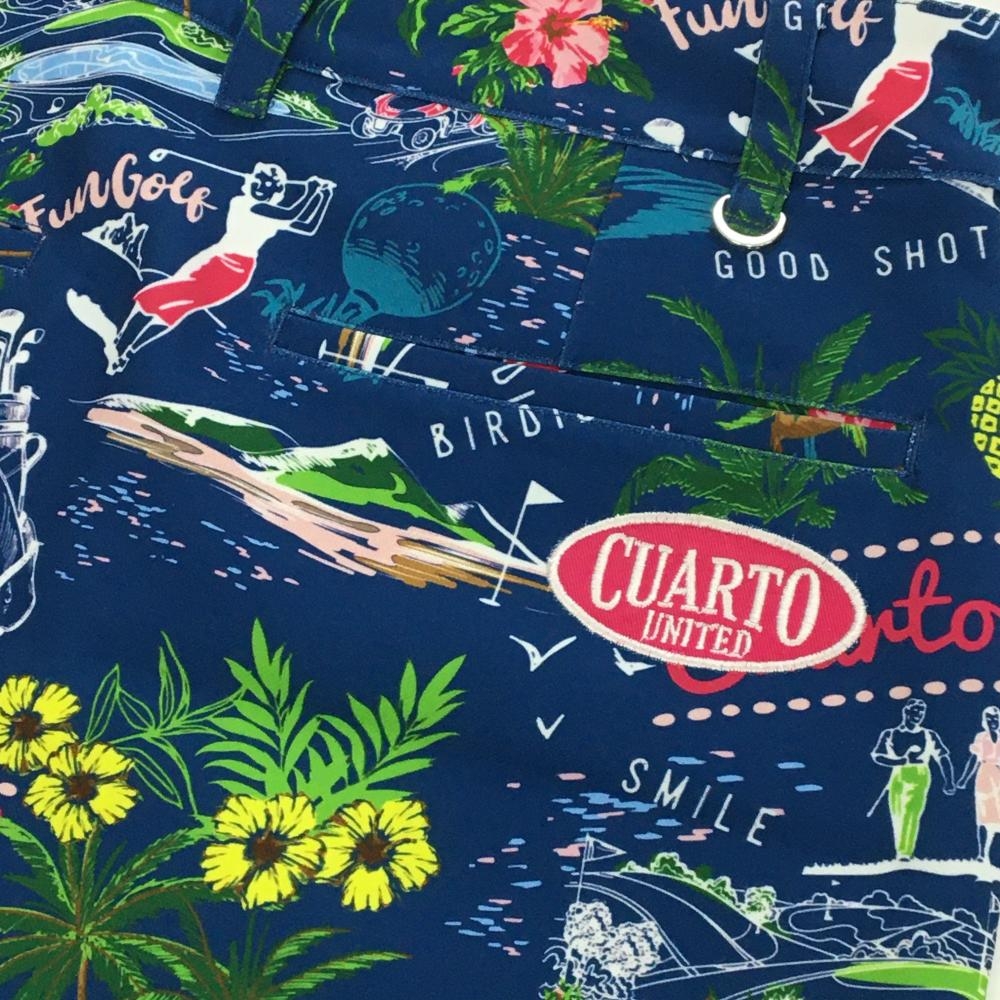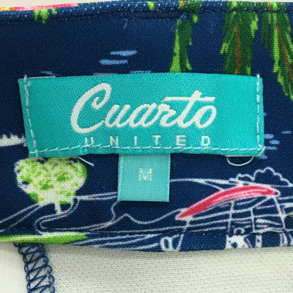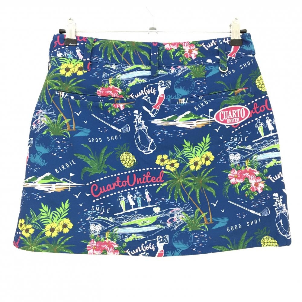 【超美品】クアルトユナイテッド スカート ネイビー系×マルチカラー 総柄 花 パイナップル レディース M ゴルフウェア CUARTO UNITED