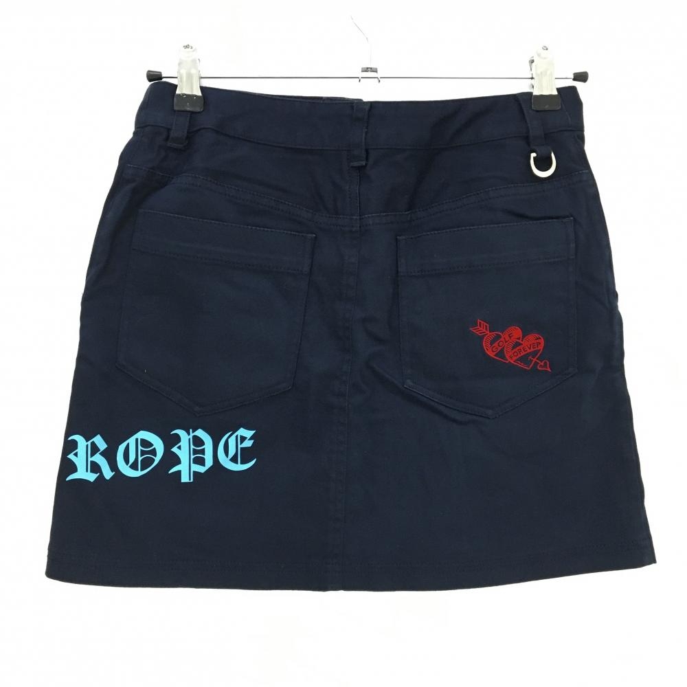ジュンアンドロペ スカート ネイビー×ライトブルー クローバープリント インナーパンツ付 レディース M ゴルフウェア JUN&ROPE
